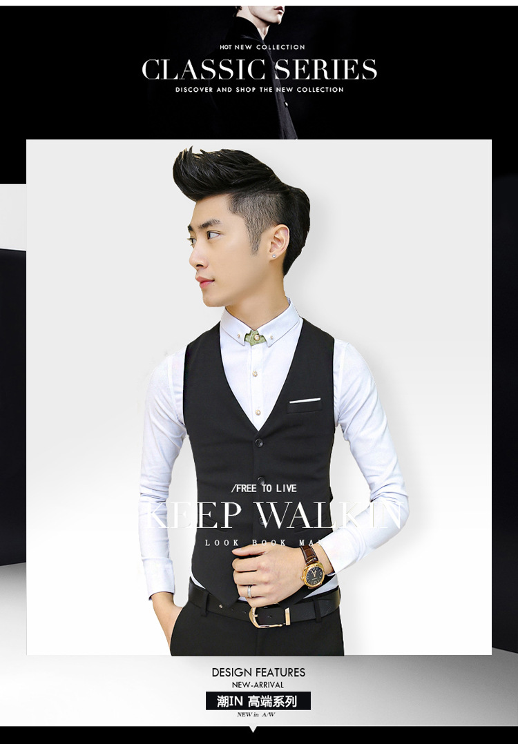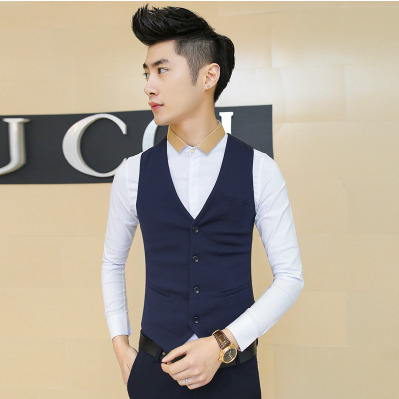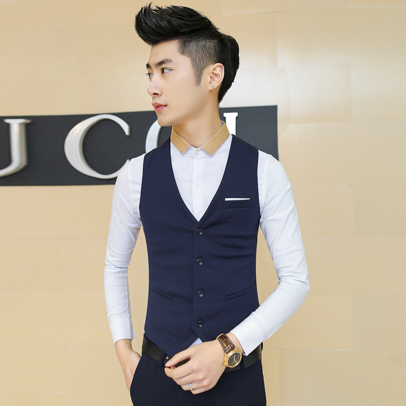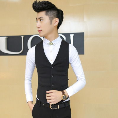 Костюм-жилет, Мужская Осенняя британская рабочая одежда, приталенный повседневный черный костюм-жилет в Корейском стиле, весенне-осенний костюм, лучшая мужская одежда, мужская