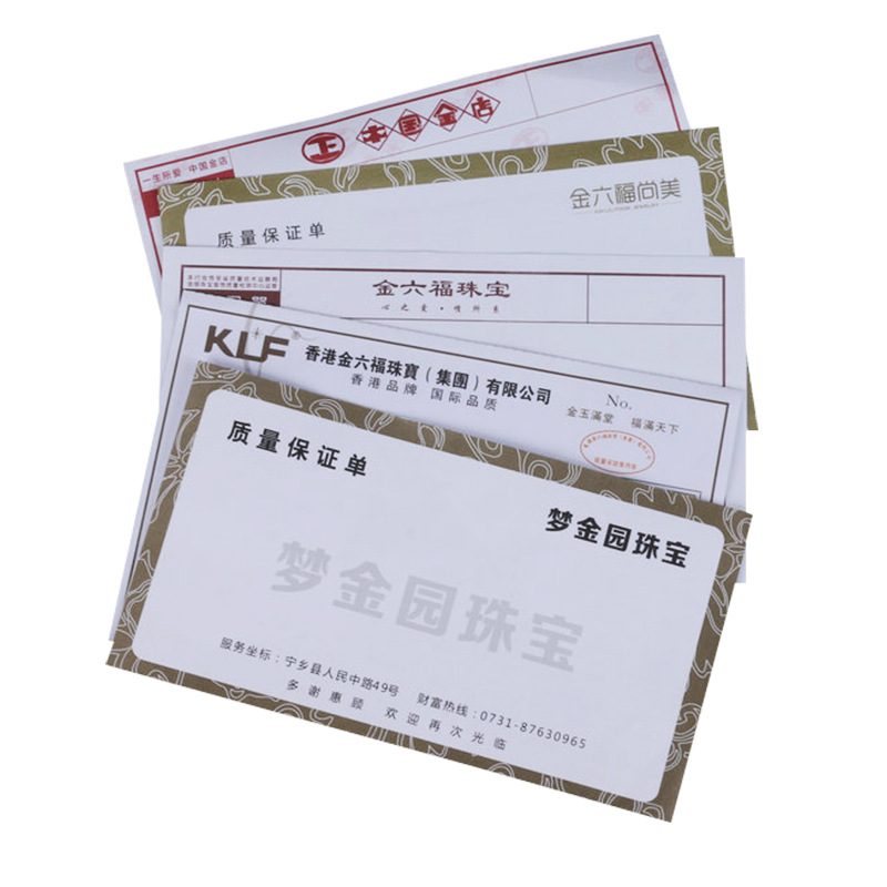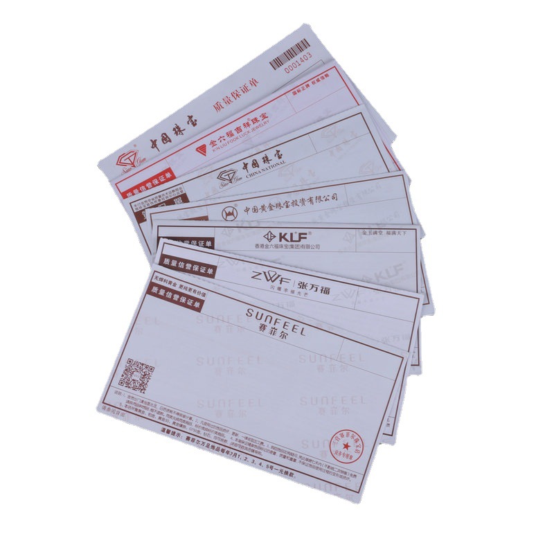 Из двух частей Политика ювелирных изделий Форма продаж ювелирных изделий Гарантийный талон Форма продаж с отверстиями Печатный логотип