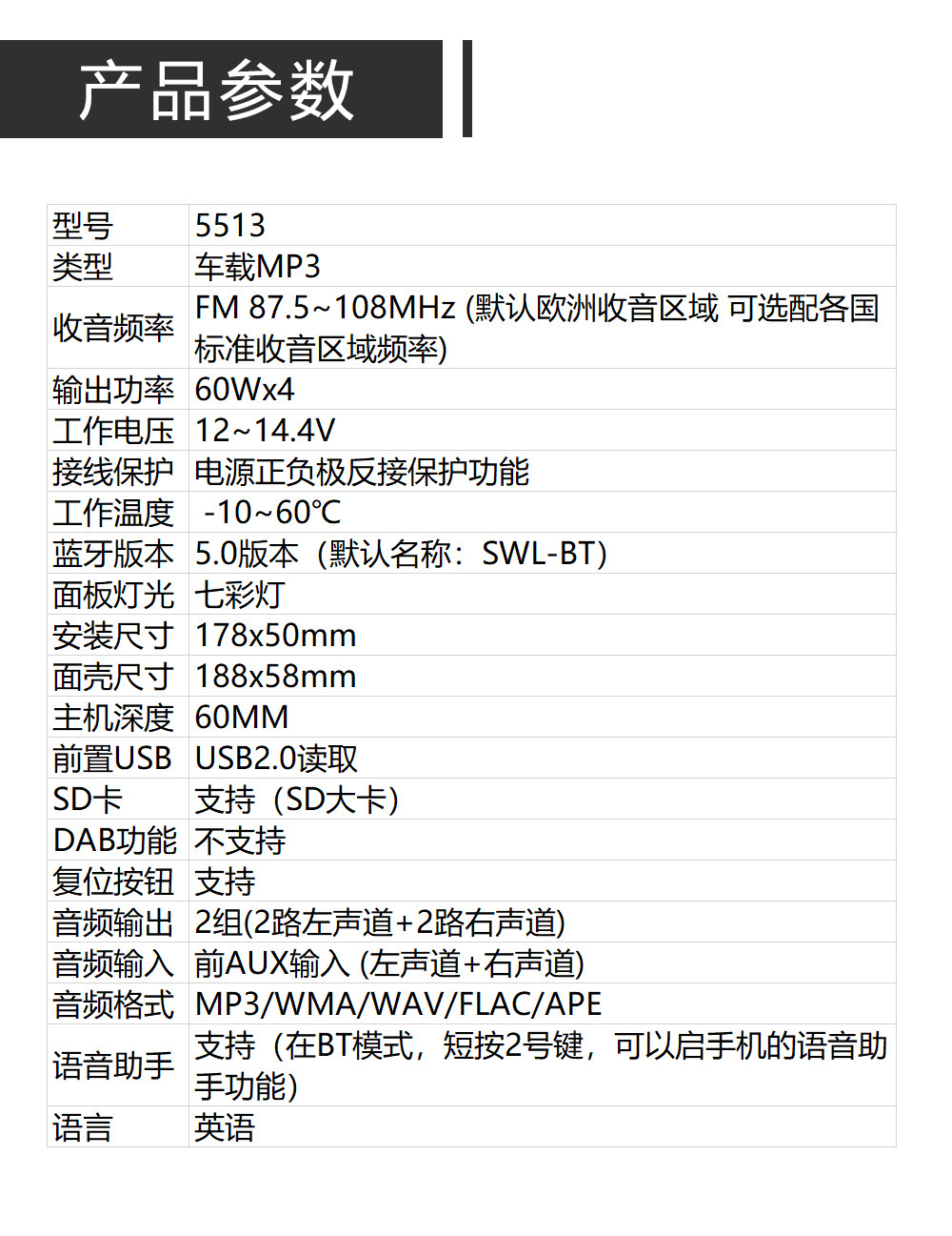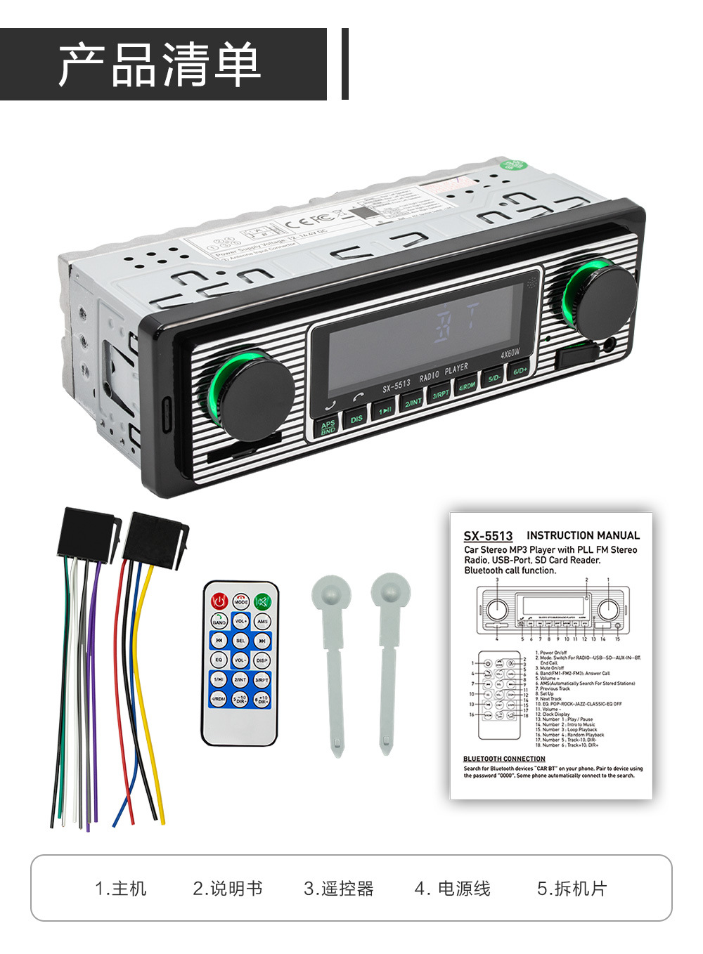 Автомобильный MP3 трансграничный Bluetooth-вызов Автомобильный MP3-плеер U Дисковая карта для вставки машины поколения радио CD-хост 5513