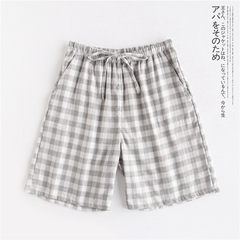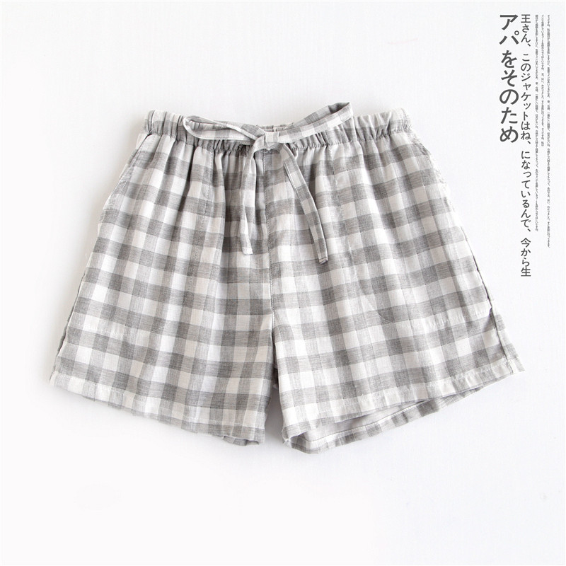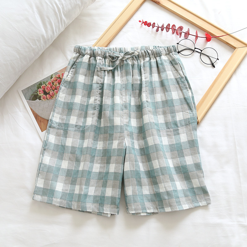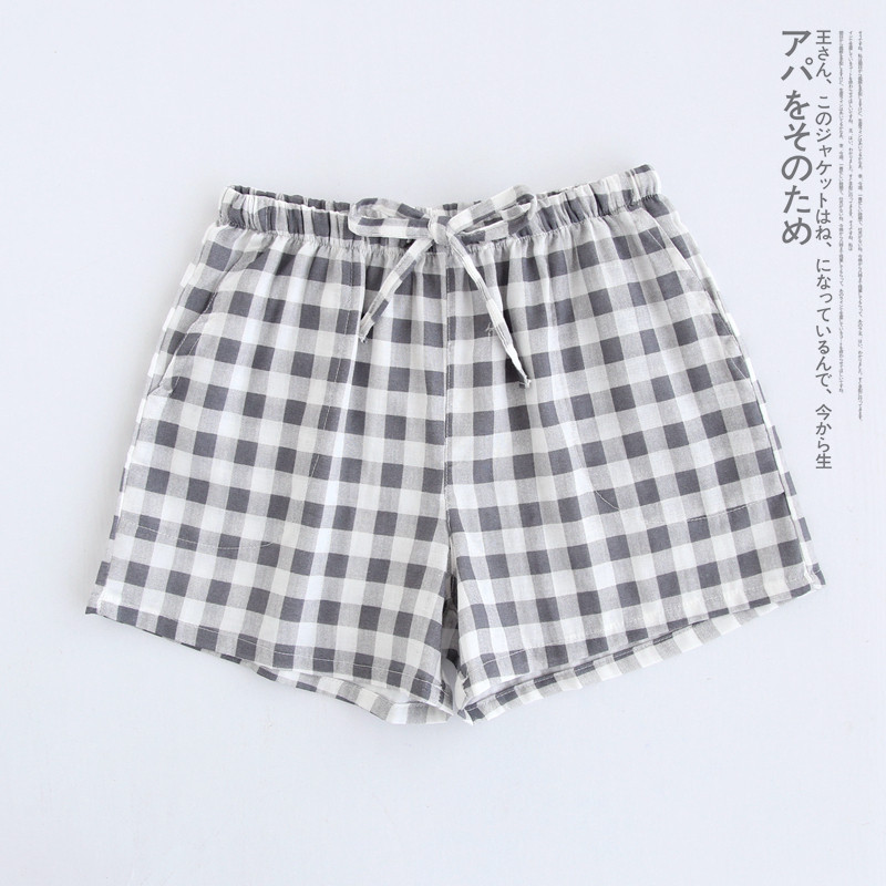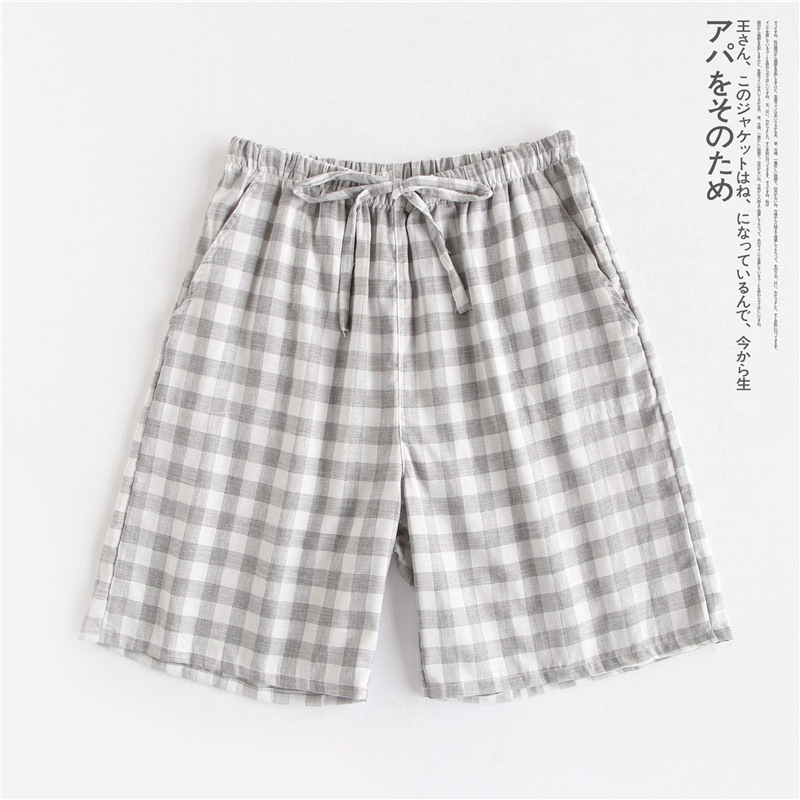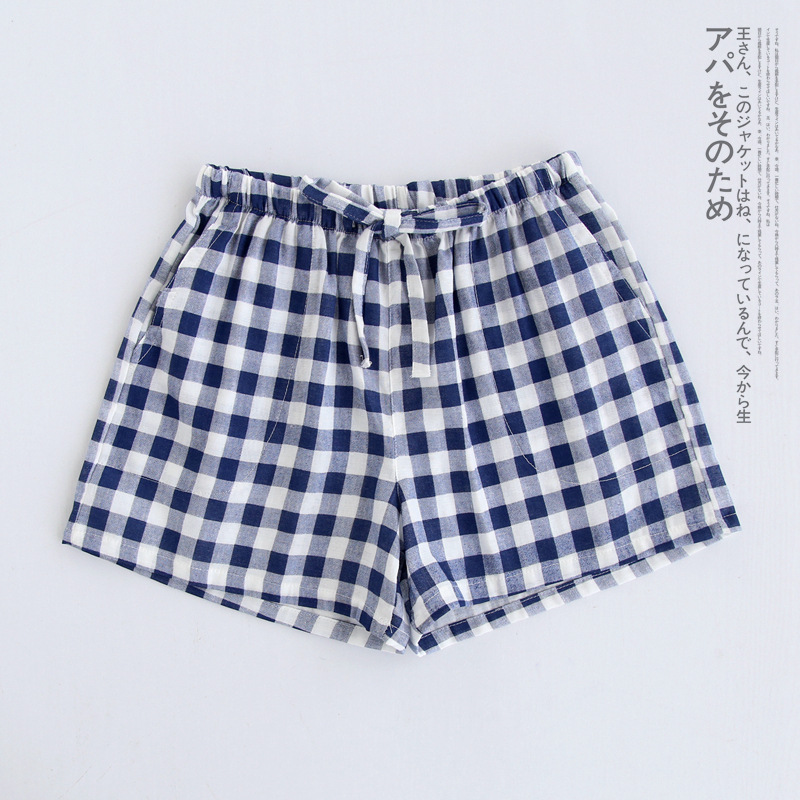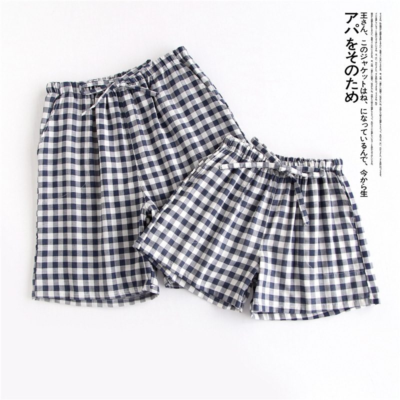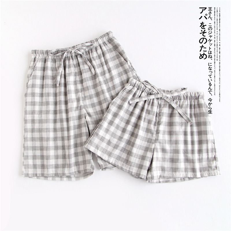 Оптовые парные шорты, пижамные брюки, Летние марлевые пятые брюки из чистого хлопка, японские повседневные клетчатые мужские и женские домашние брюки больших размеров