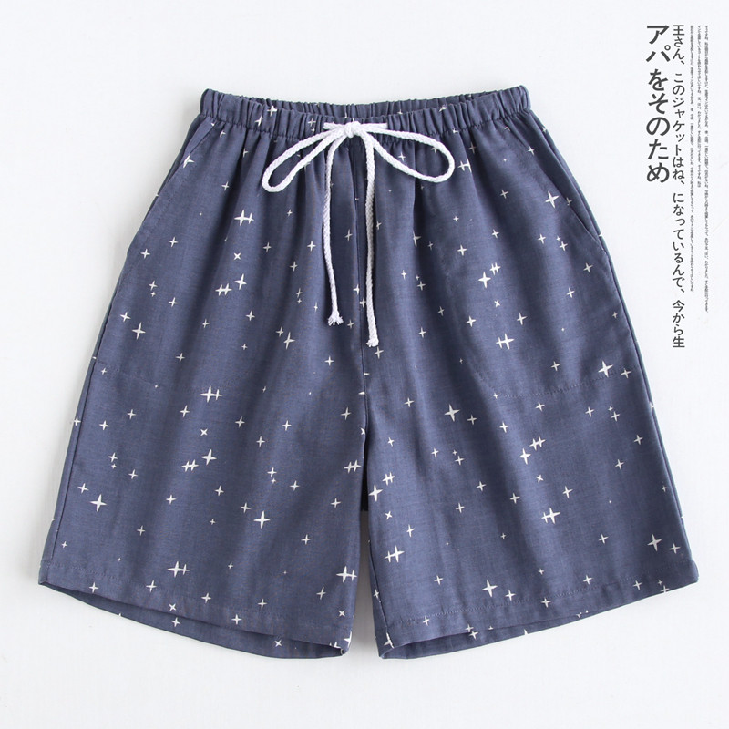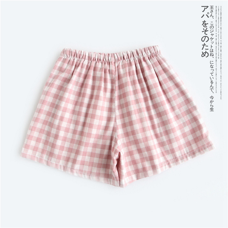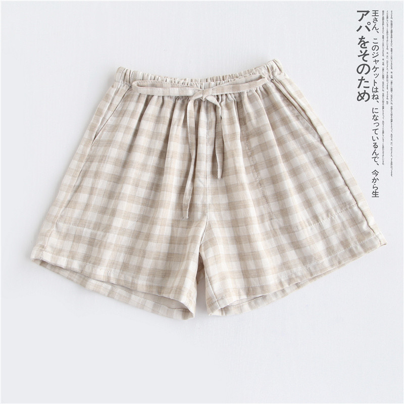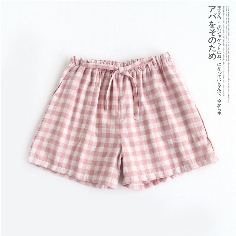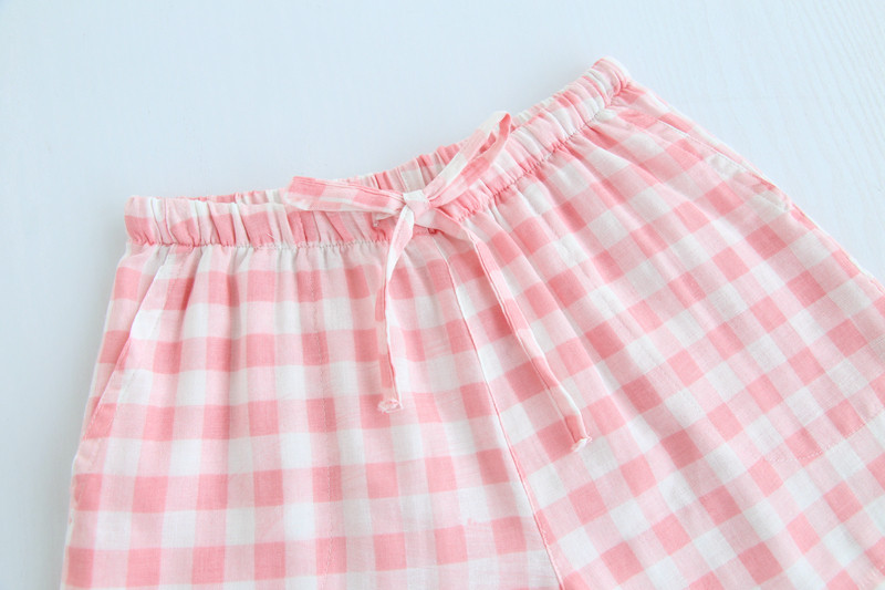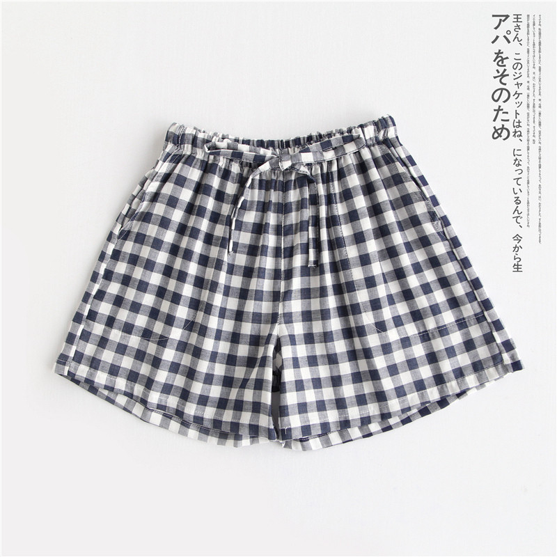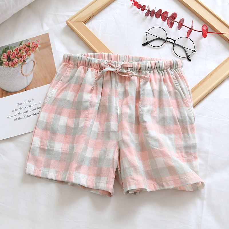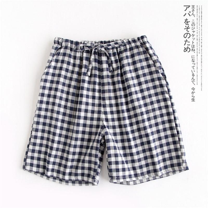 Оптовые парные шорты, пижамные брюки, Летние марлевые пятые брюки из чистого хлопка, японские повседневные клетчатые мужские и женские домашние брюки больших размеров