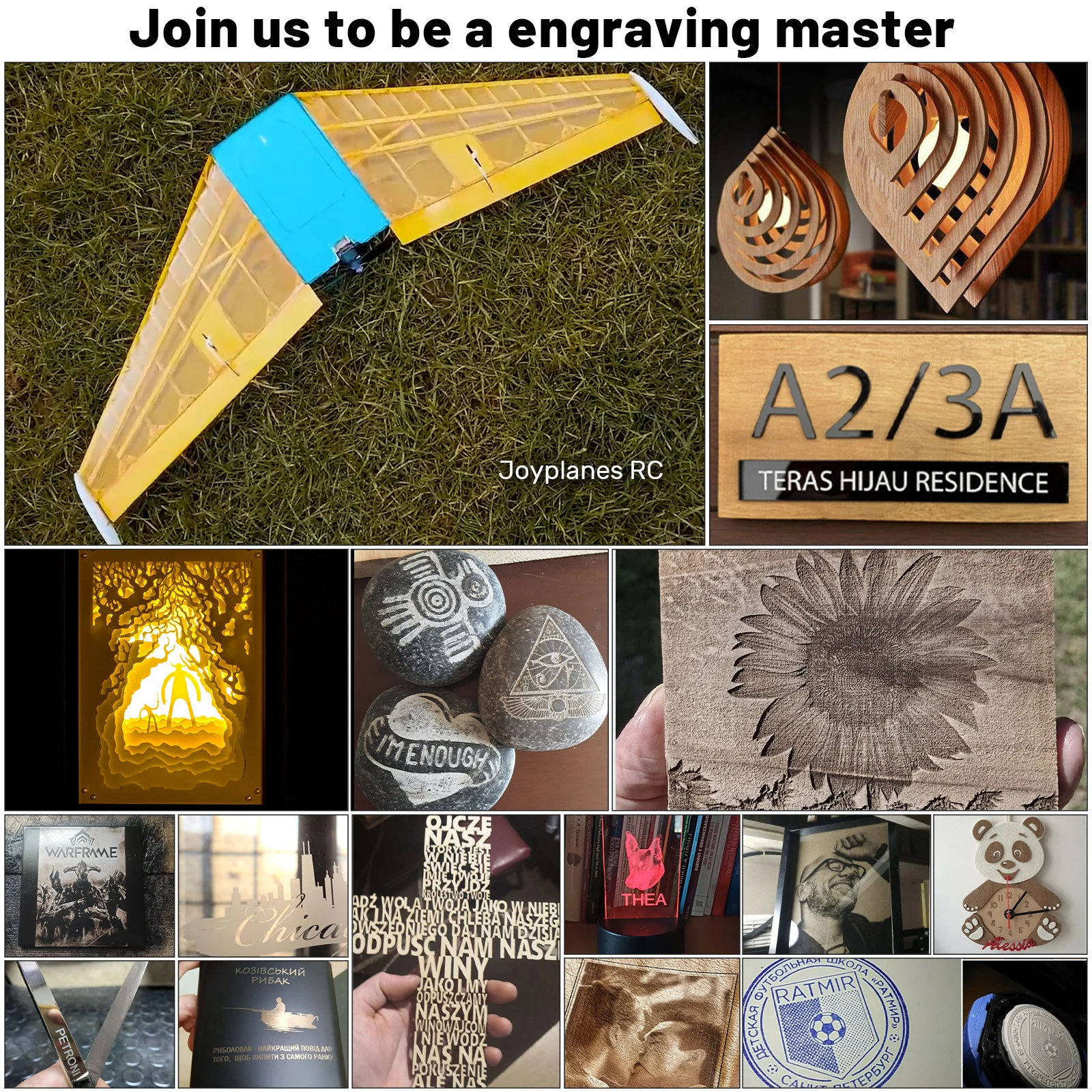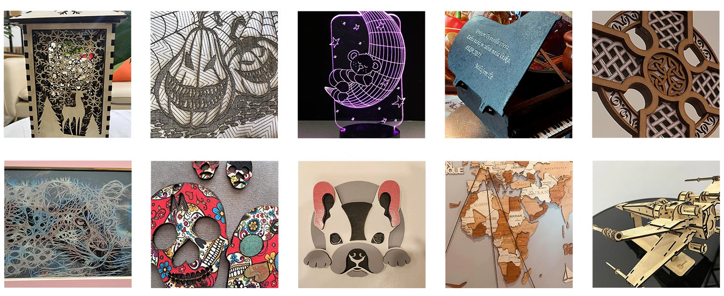 雕刻材料:木材、竹子、纸板、塑料、皮革、PCB板、氧化铝、无反射电镀及涂漆金属、304镜面不锈钢、玻璃、陶瓷、棉花、板岩;
