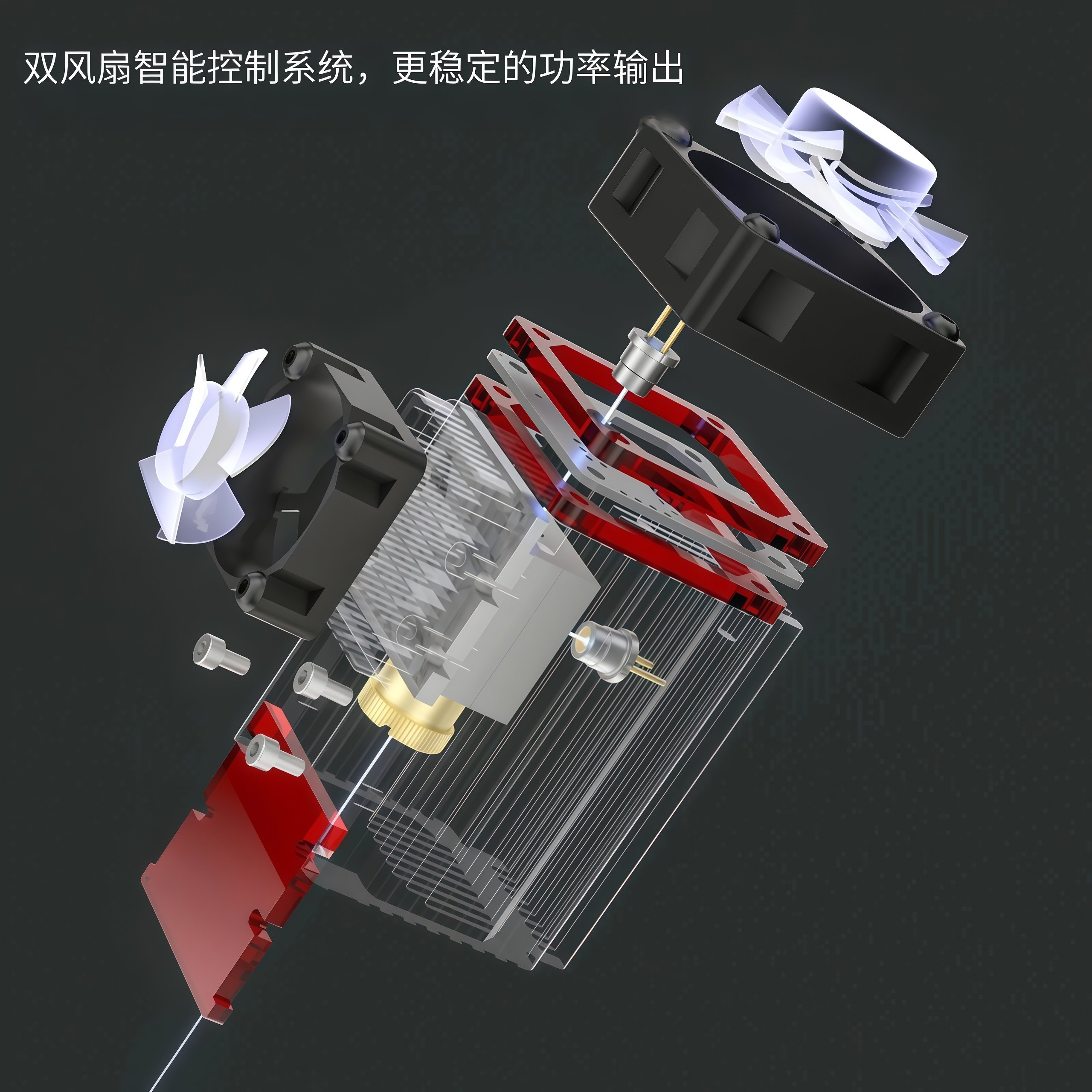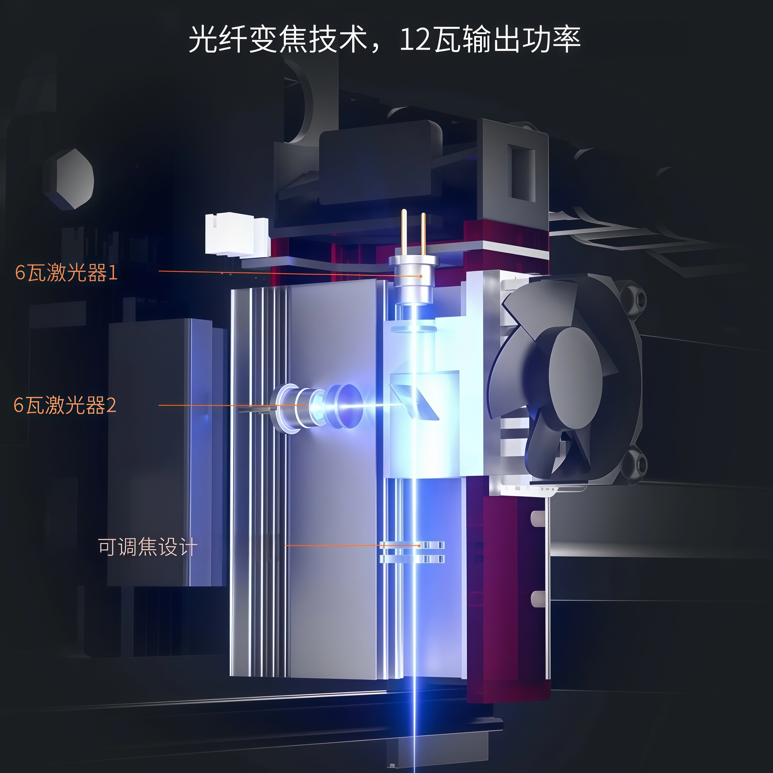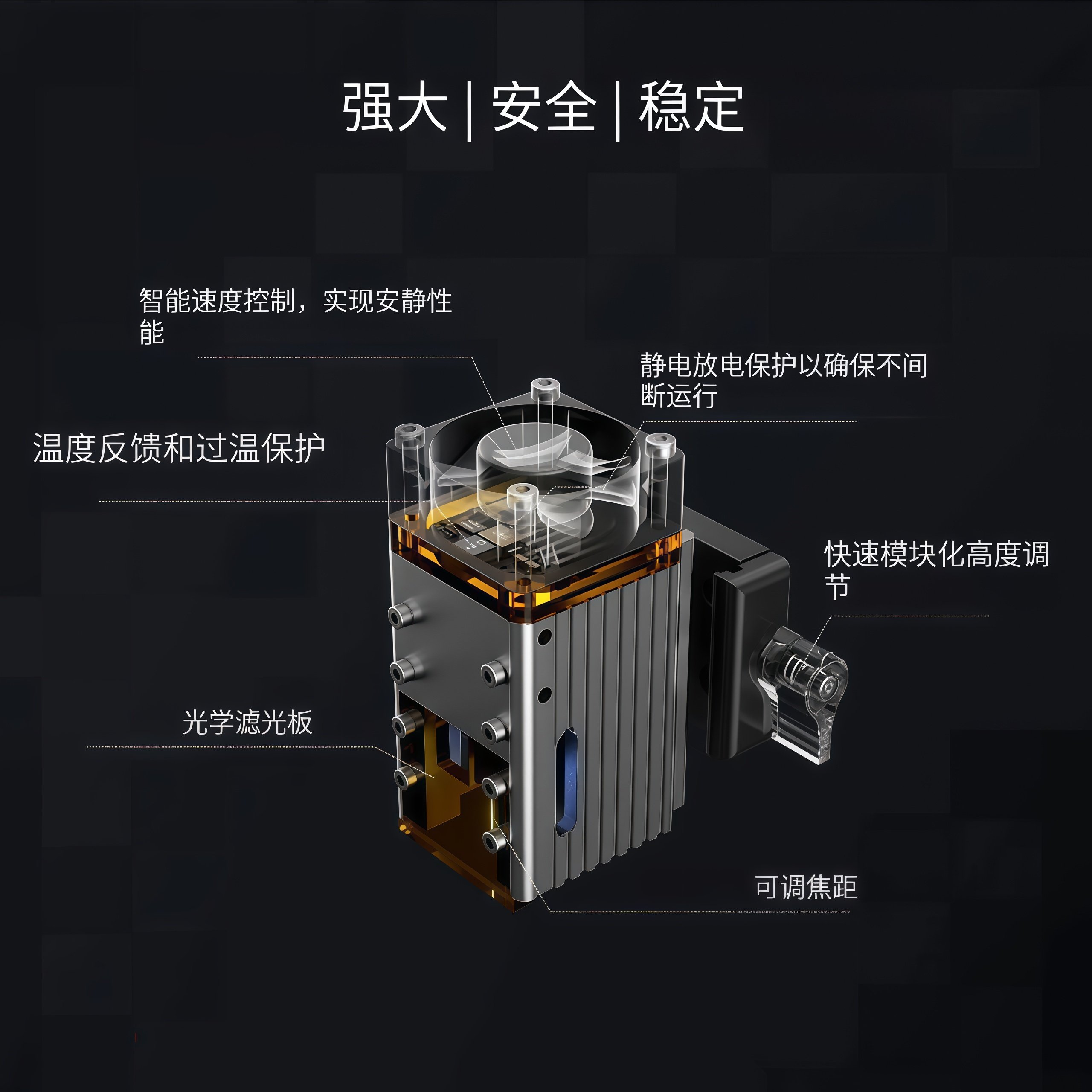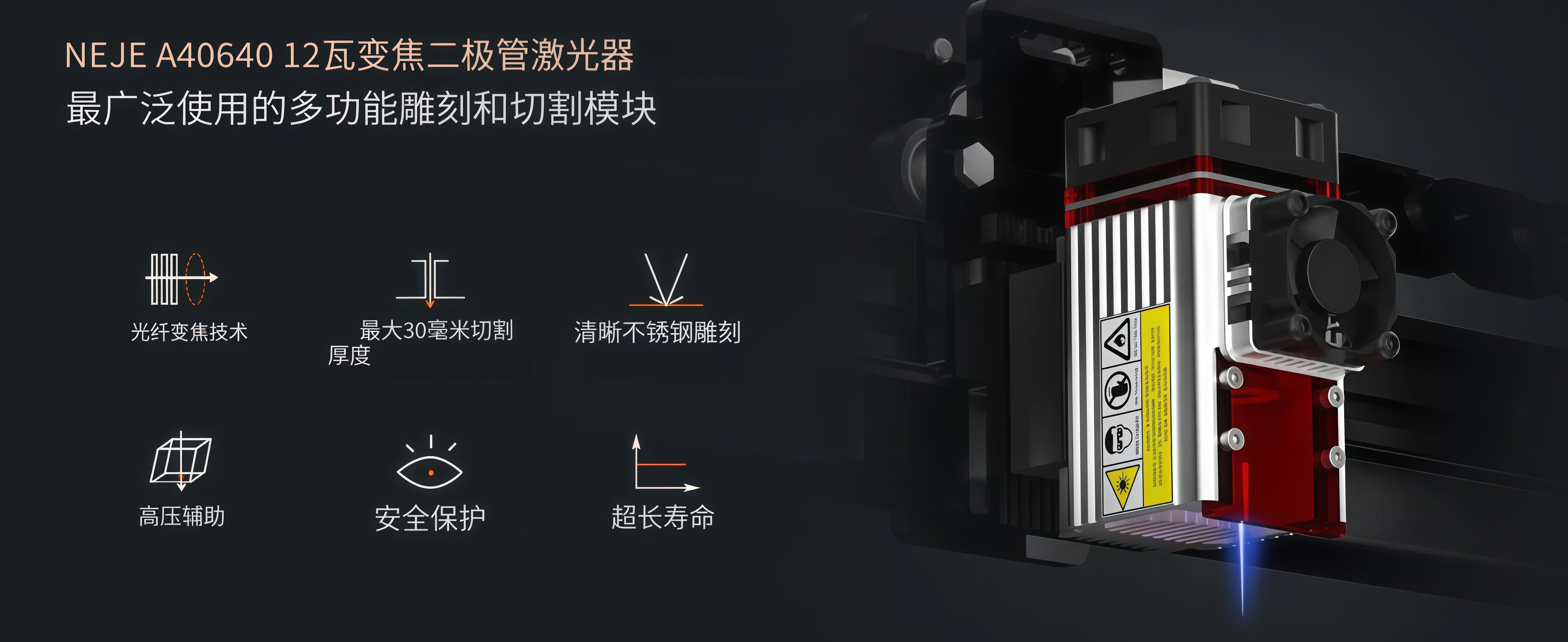 A40640 压缩光斑-光功率12W 双二极管双风扇可调焦距 450波长【可雕不锈钢】