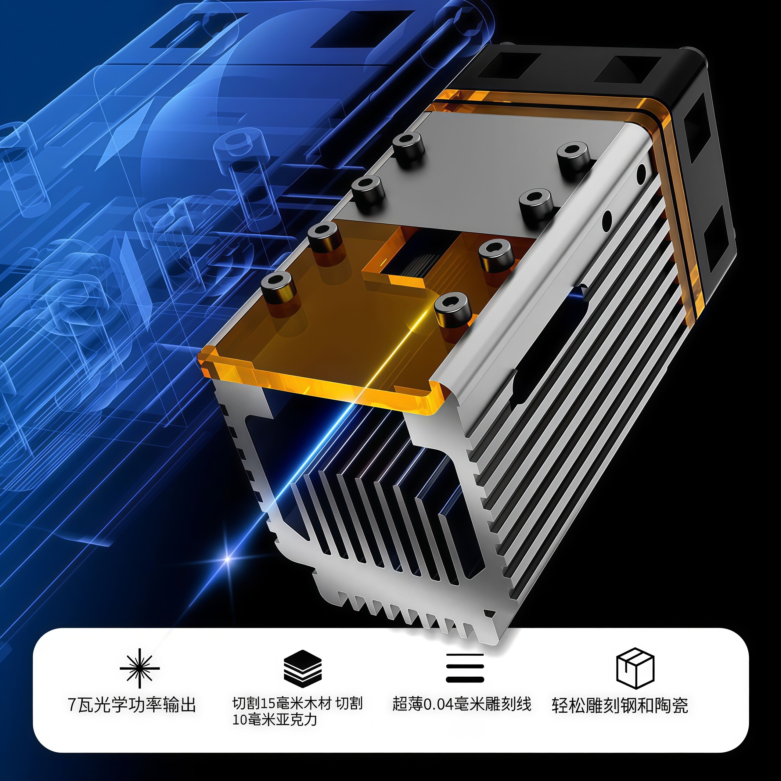 E30 压缩光斑-光功率7W 可调焦距 450波长【可雕不锈钢】
