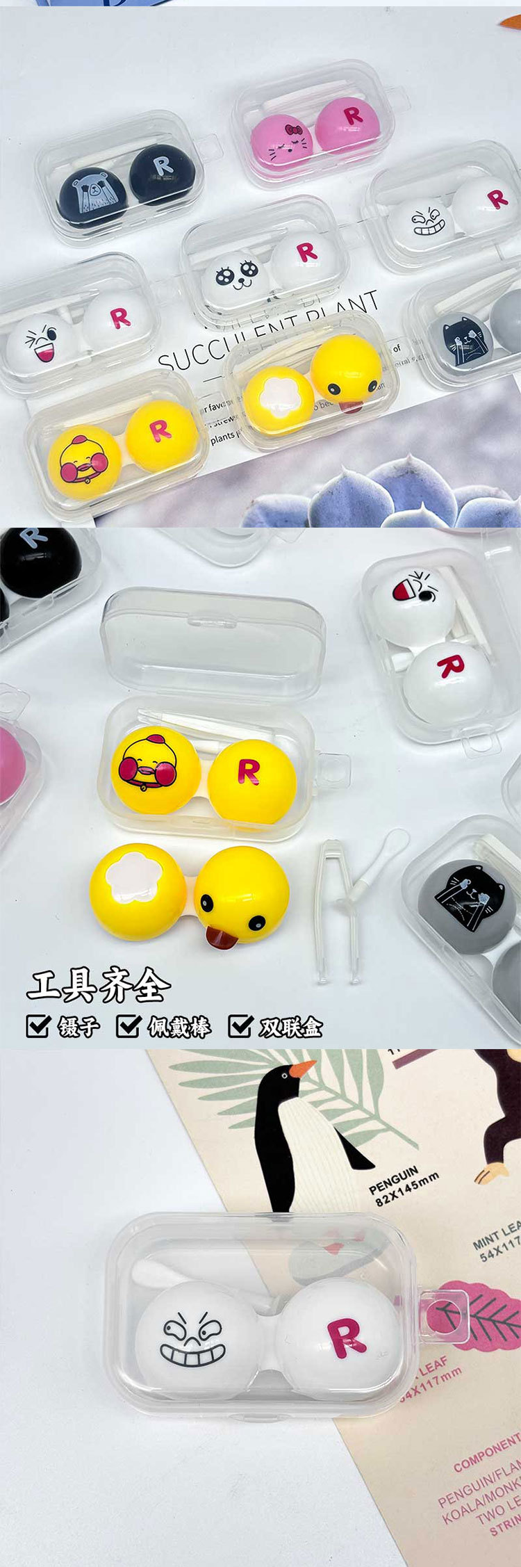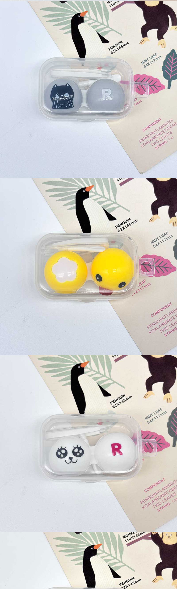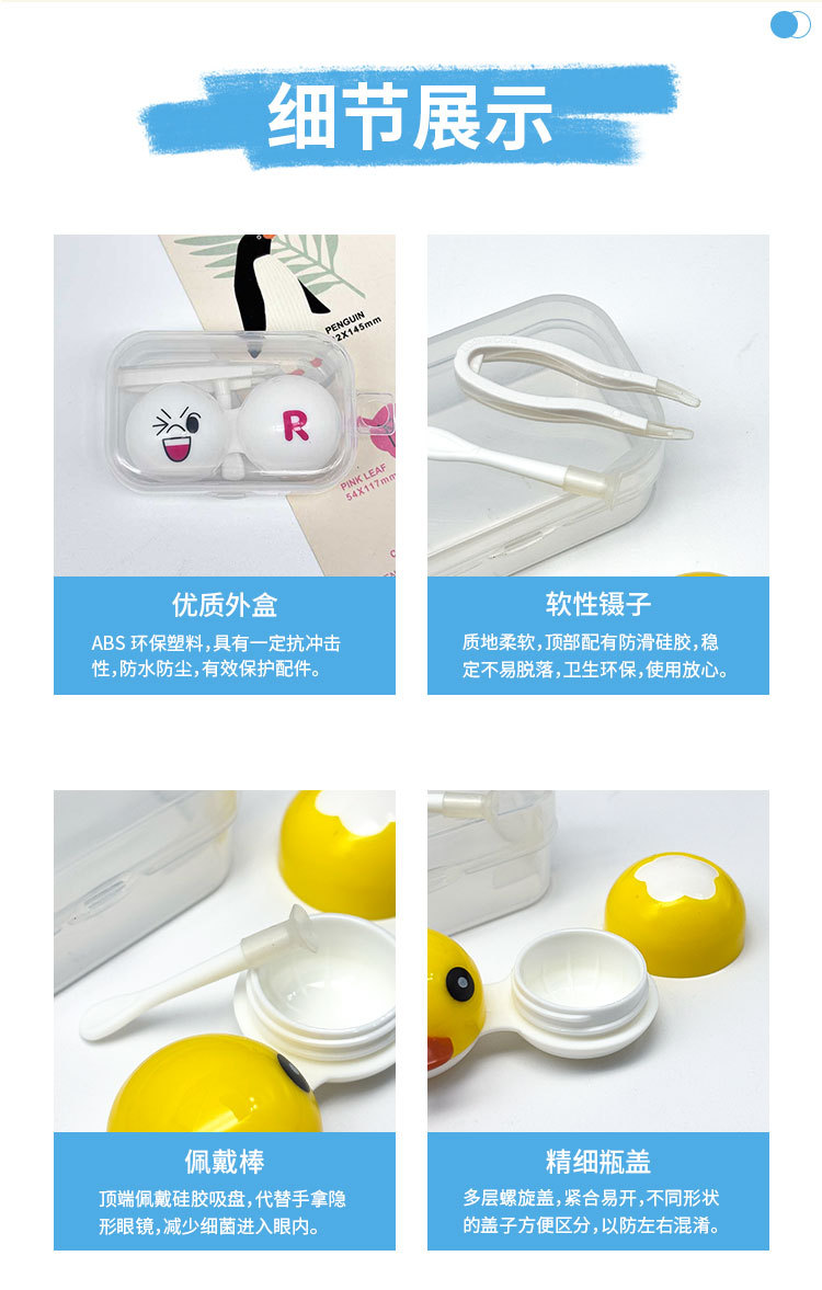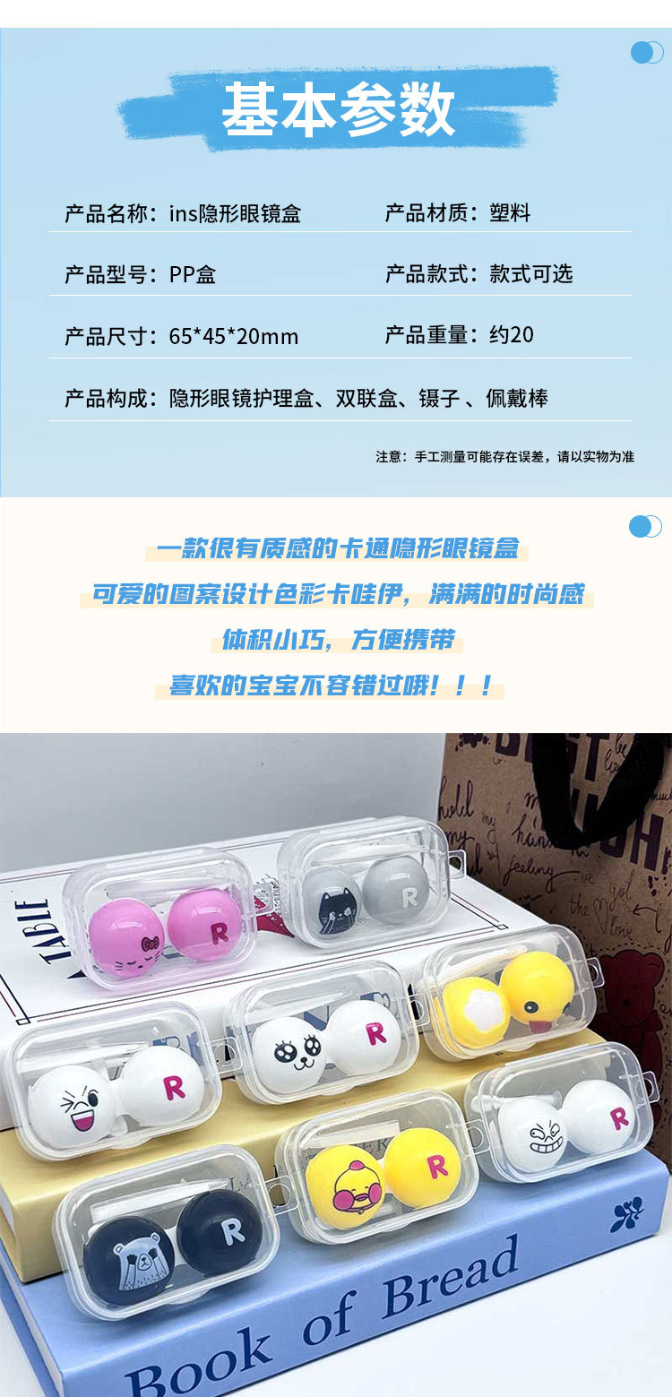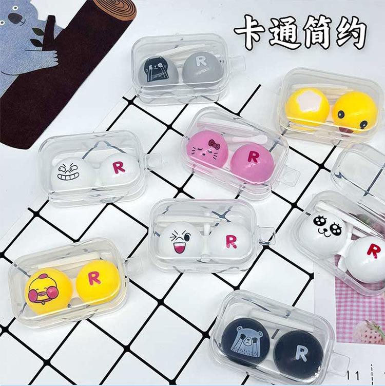 Коробочка для контактных линз с мультяшным рисунком, компактная и портативная, милая цветная двойная коробочка для хранения контактных линз, модный стиль.