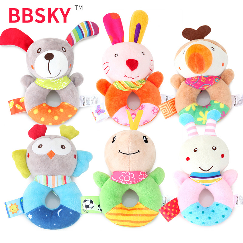 Милый щенок Сова пчела кролик мультфильм кольцо руки детские плюшевые игрушки колокольчик Игрушка оптом