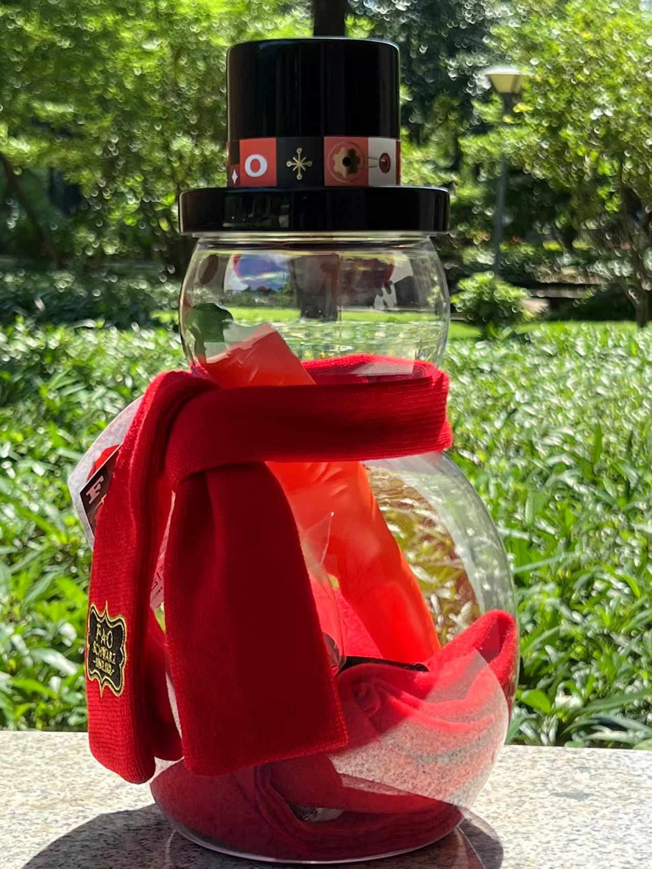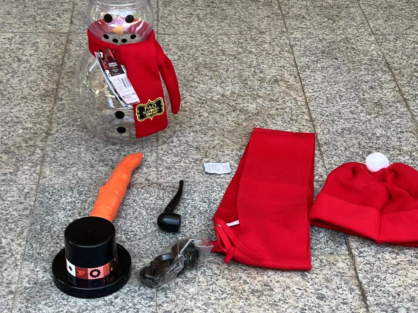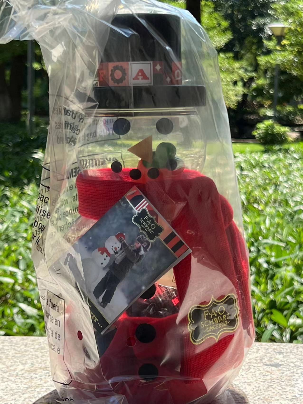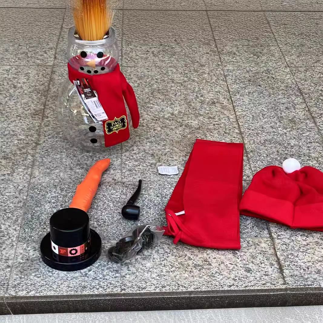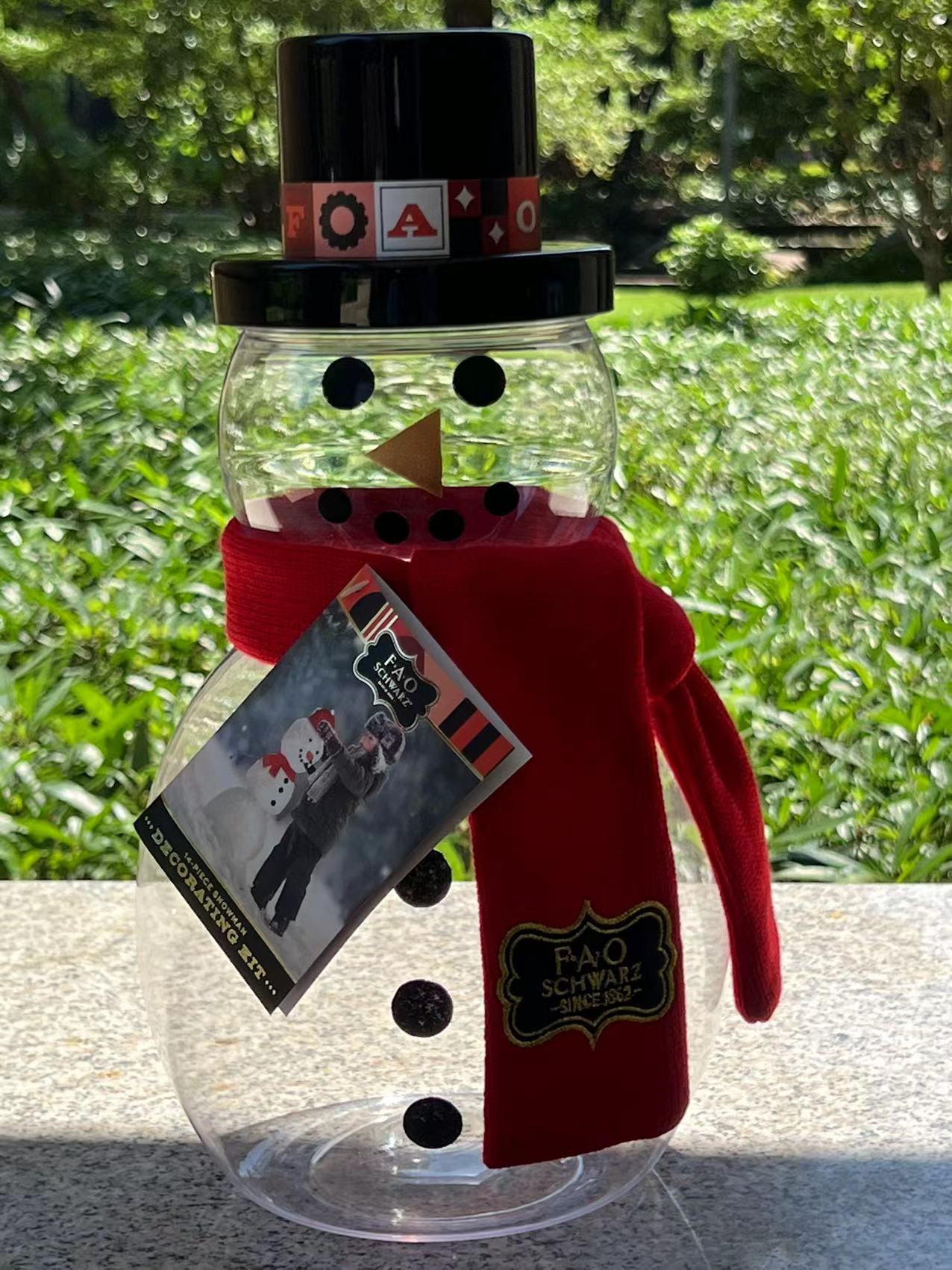Банка для конфет FAOSCHWARZ в виде снеговика поставляется с аксессуарами для сборки снеговика.