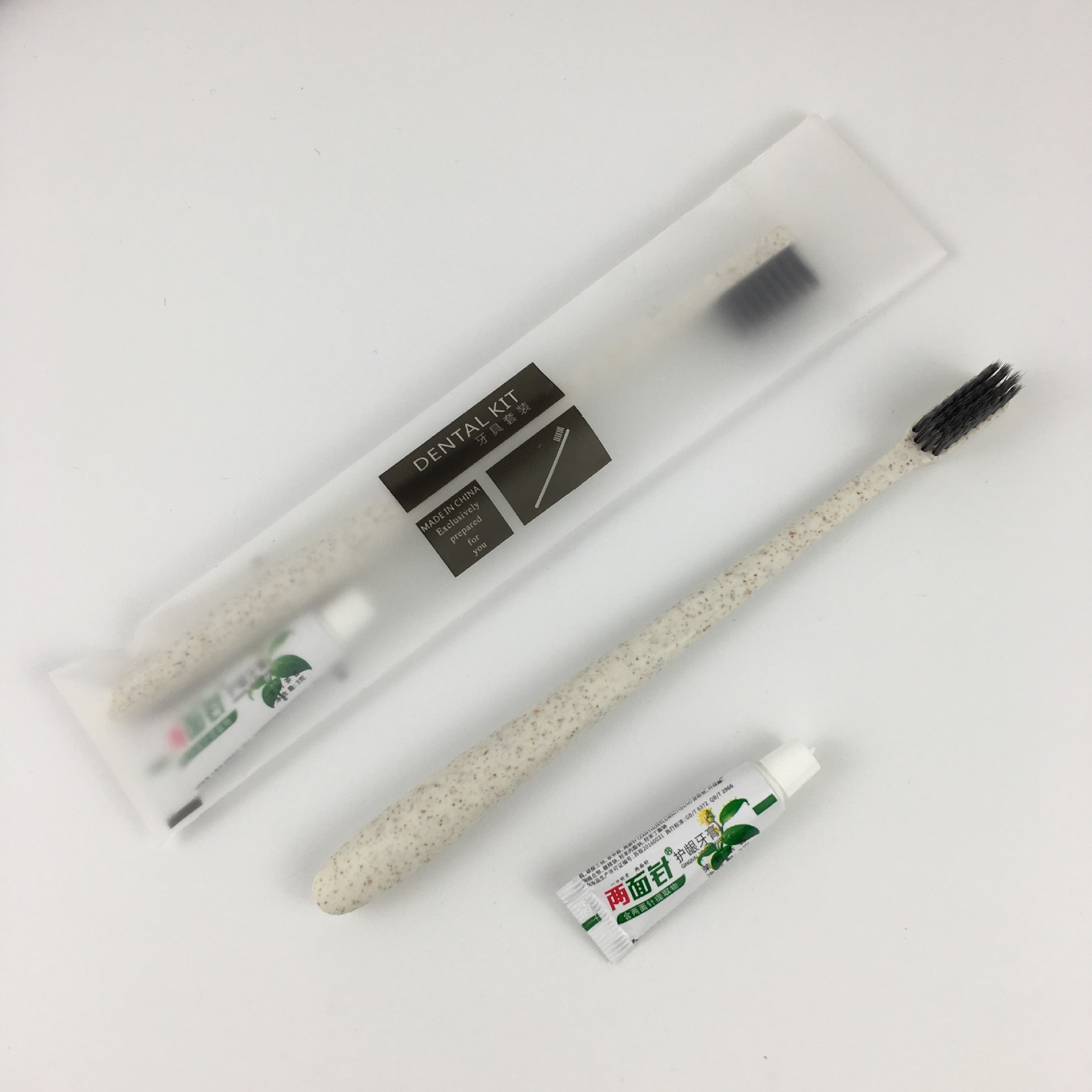 Отель Одноразовые туалетные принадлежности Проживание в семье Мягкие волосы Пшеничная солома Зубная щетка Зубная паста Матовая мягкая пленка костюм в наличии