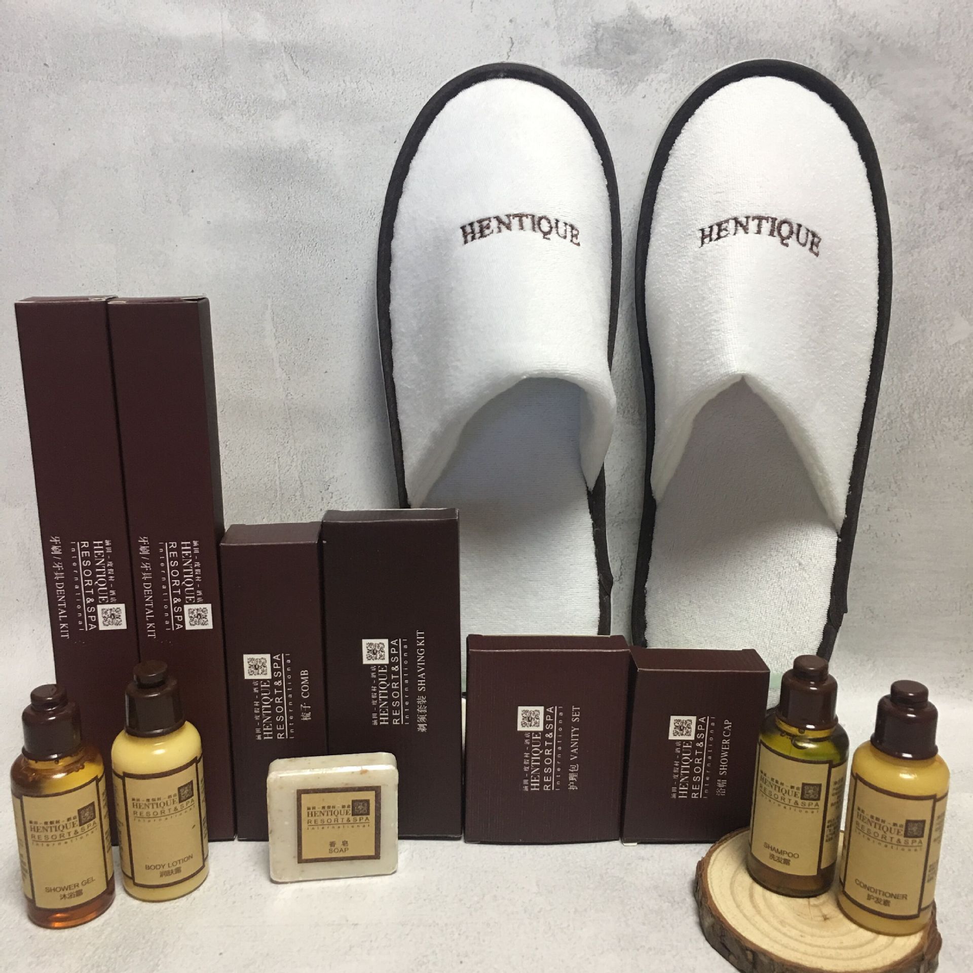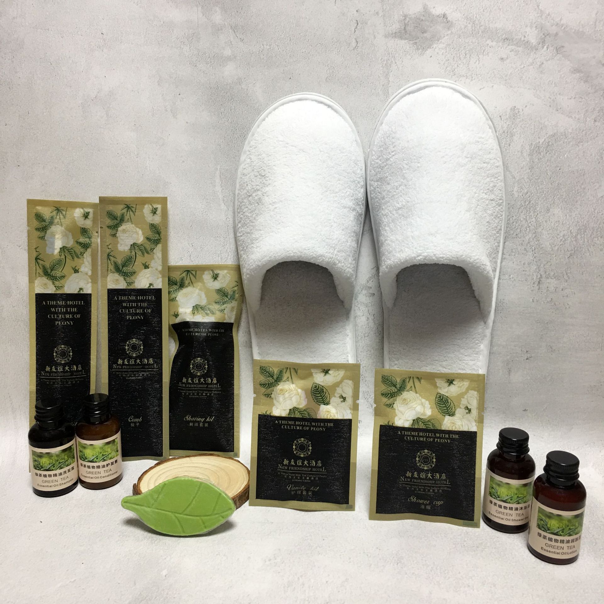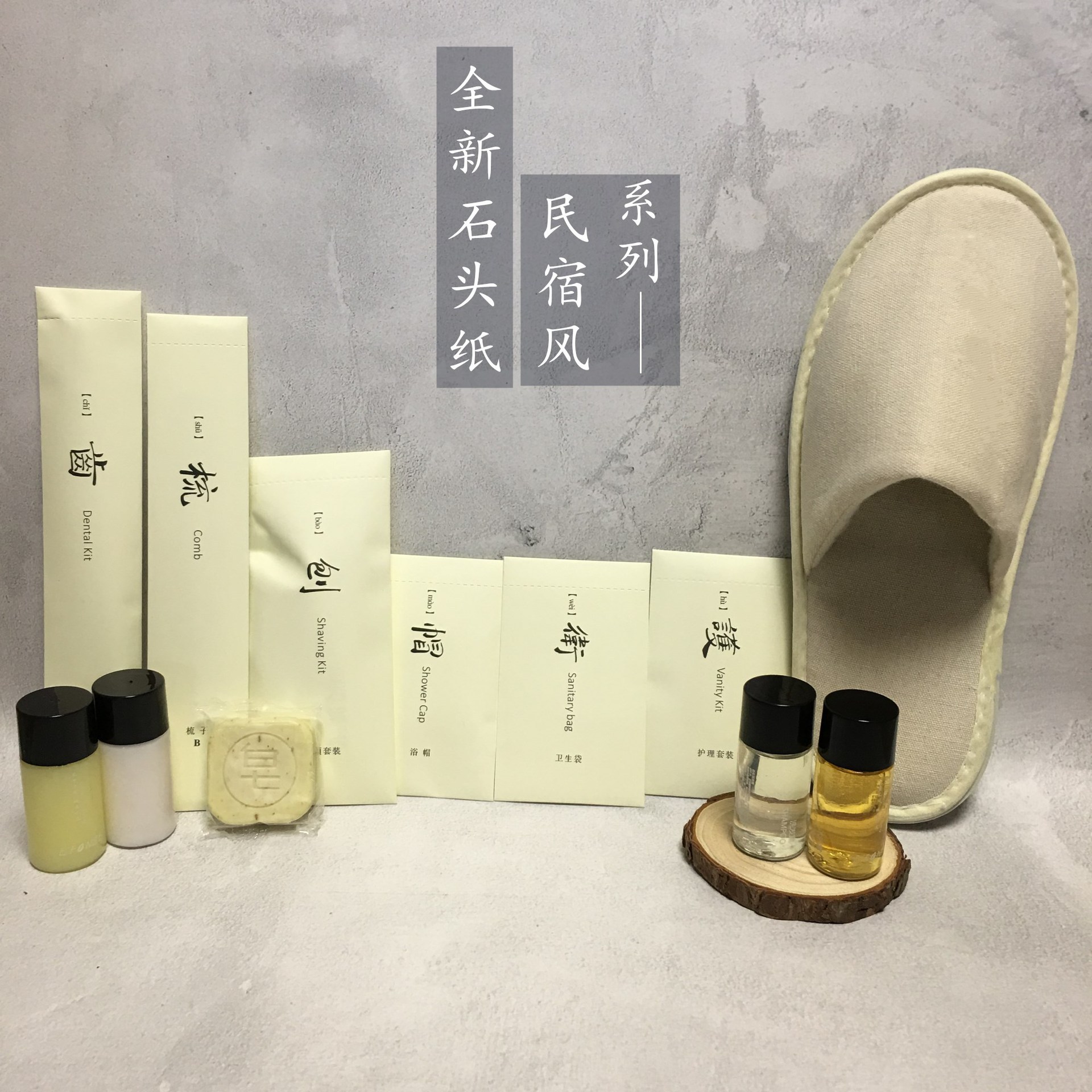 Стоматологический прибор; Расческа; Шампунь; Купание; Тапочки 1; Тапочки 2; Бритвенный костюм; Костюм кормящих; 20 г мыла из листьев пшеничных отрубей; 20 г молочного мыла с пшеничными отрубями; Швейный набор; Шапочка душа; Женская Гостевая сумка