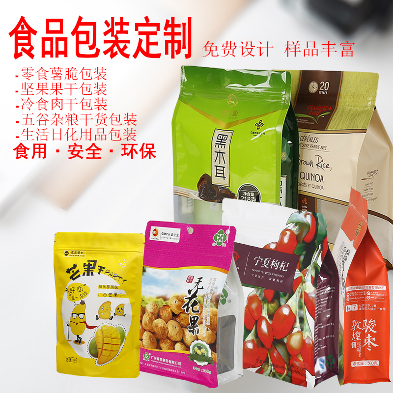 | 八边封袋, 顾名思义就是八条封边、底部四条封边两边侧面各两条边、这种袋型是近两年兴起的新袋型、目前很多电商知名品牌都是在用这种袋型、八边封袋因其立体感好、看上去比较显档次、高端大气、广受消费者青睐。随着时代的不断的发展 ,现在人们的消费观念也在不断的发生变化,人们对生活品质的追求也在不断的提升。就拿食品举例来说,食品包装袋的好坏就直接关系着我们的购买欲望。