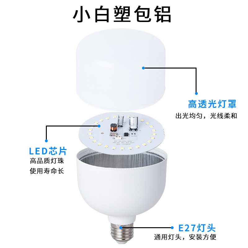 产品名称:LED高富帅球泡灯 小白塑包铝 大莱塑扣铝