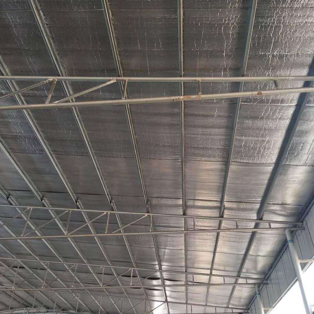 或在铁瓦下面用铁丝拉固定、装吊顶也行。铁棚新做的,就在钢架上先铺设隔热绵,四个角用扎带固定一下,两块之间绵重叠10厘米,上面盖铁瓦就行了。