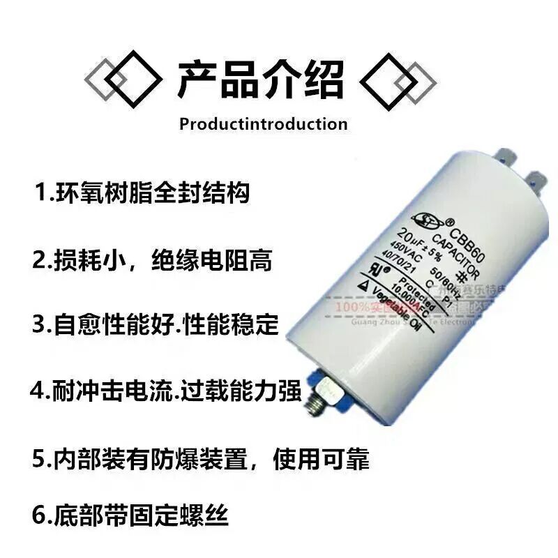 Пусковой конденсатор с винтовым конденсатором CBB 60 450 V35uf Конденсатор для стиральной машины с гайкой 35uf450V