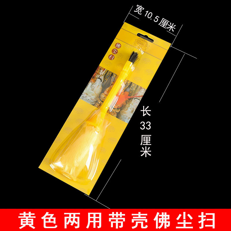 装箱量:黄色佛尘扫带包装/红色佛尘扫带包装/黄色两用佛尘扫带包装/红色两用佛尘扫带包装都是一箱装200个的。