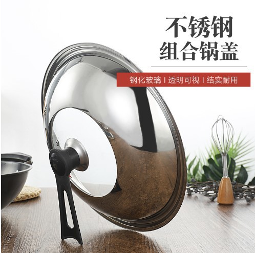 Крышка для кастрюли взрывозащищенное стекло видимая крышка пищевая немагнитная крышка из нержавеющей стали вок плоское дно большая крышка для кастрюли 30-40 см