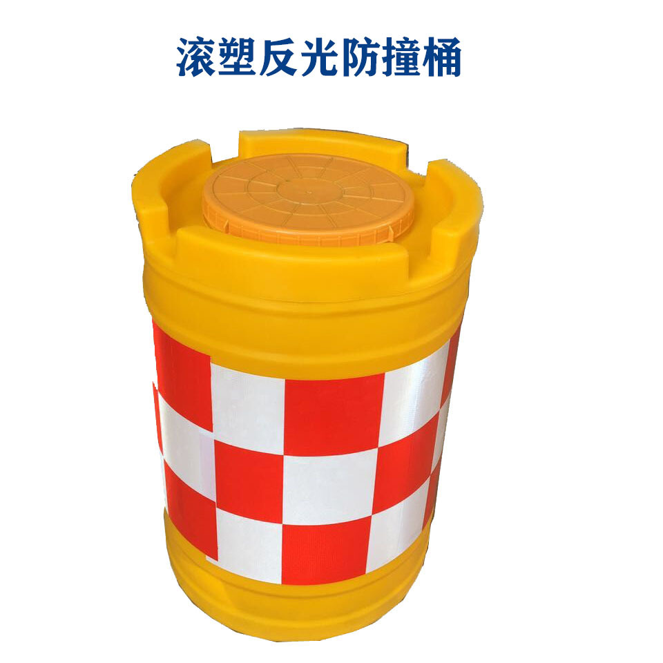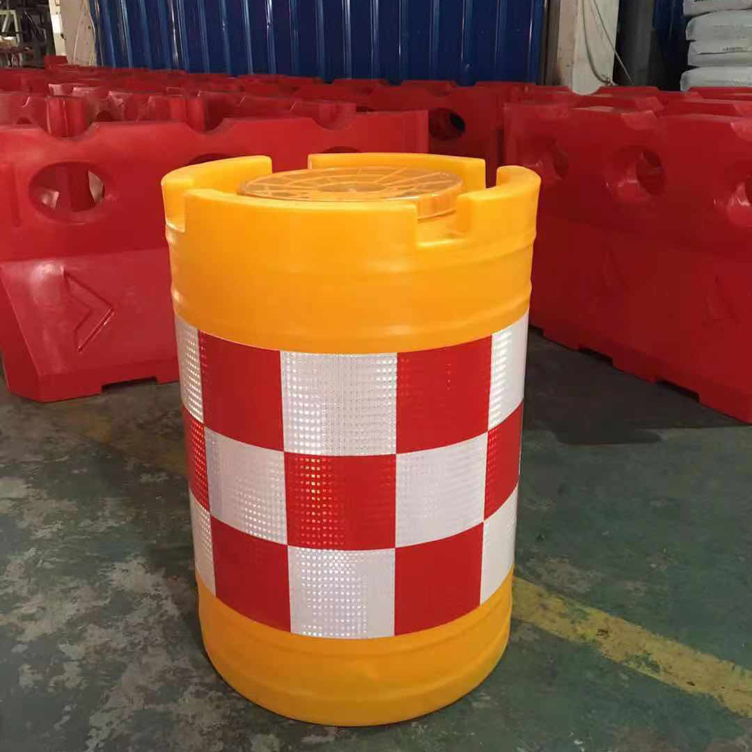 2、防撞桶桶色为橘红色,色泽鲜明亮丽,贴上红白反光膜夜间更加醒目。