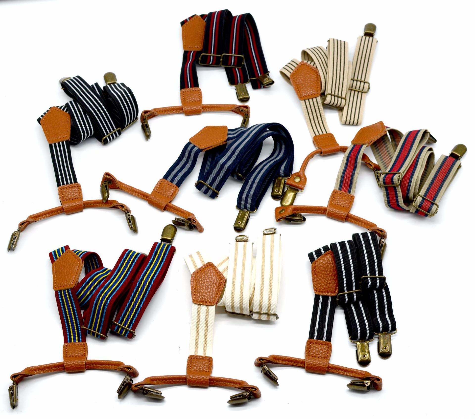 Трансграничный источник Зажим для ремня в полоску в британском стиле, эластичный ремешок, 4 зажима, подвесной зажим для брюк, детский ремешок