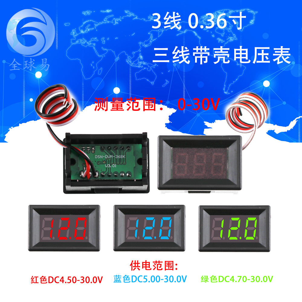 三线直流数显电压表头0.36寸LED数字电压表DC0V-30.0V