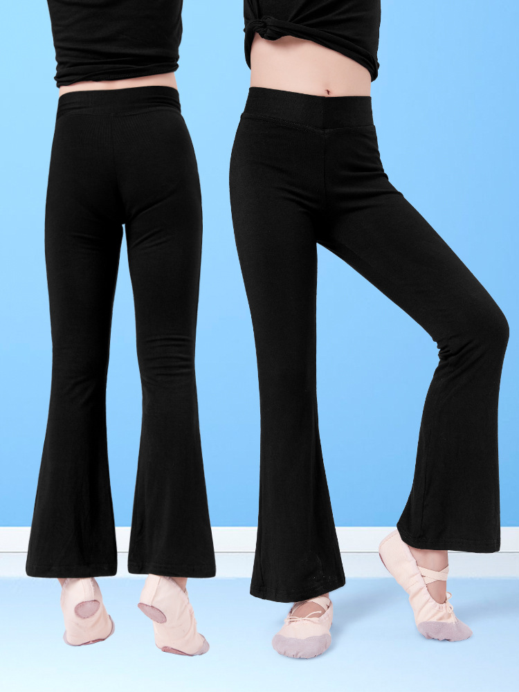 Детские танцевальные брюки Практика мальчиков девочки летние танцевальные брюки хлопковые латинские танцы джазовые танцы черные расклешенные брюки