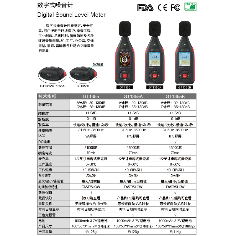 GT1355/GT1355A单台包装尺寸:185*127*45mm,重量:243.6g,40台/箱,重量:11.45kg,外箱尺寸:48.5*40.5*30.5cm;
