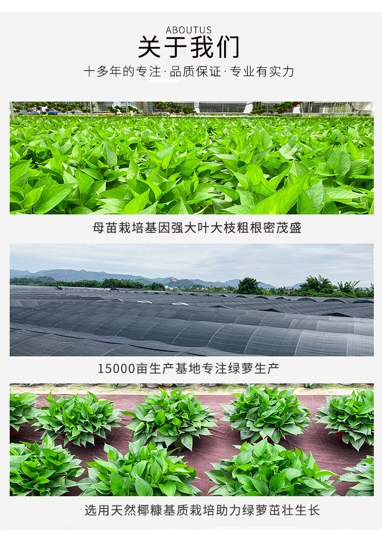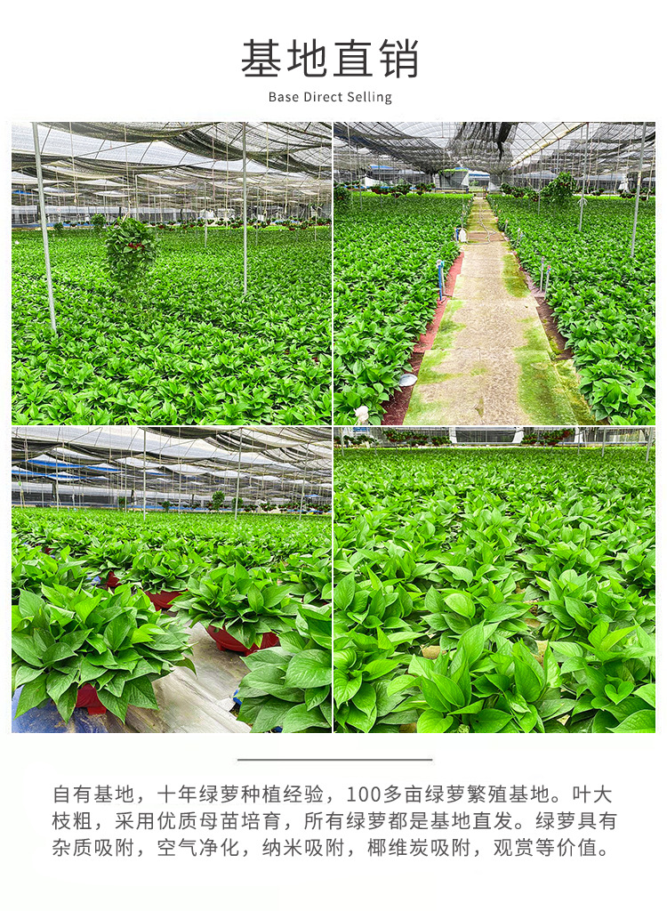 欢迎光临【广州绿丰园艺-绿萝基地】,我们是基地直供,拥有10多年种植经验,销往全国各大花卉批发市场、花店、酒店、办公楼、学校、医院、家庭、小区、公园、商场、电商企业、绿化工程公司,货品新鲜、价格实惠、货源充足、量大从优。