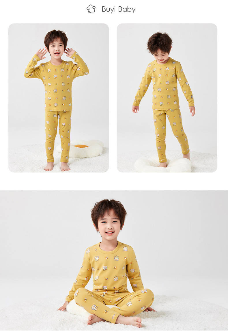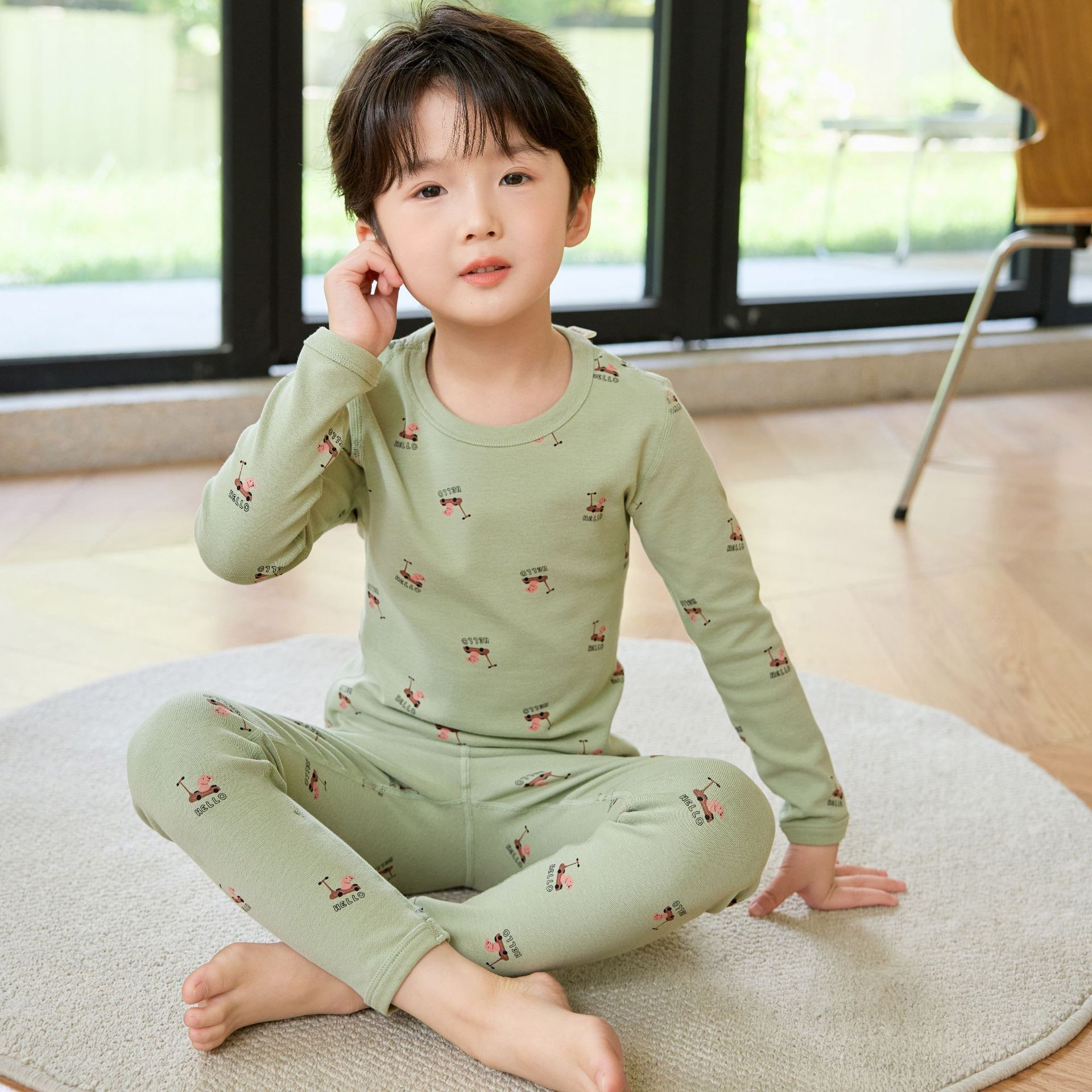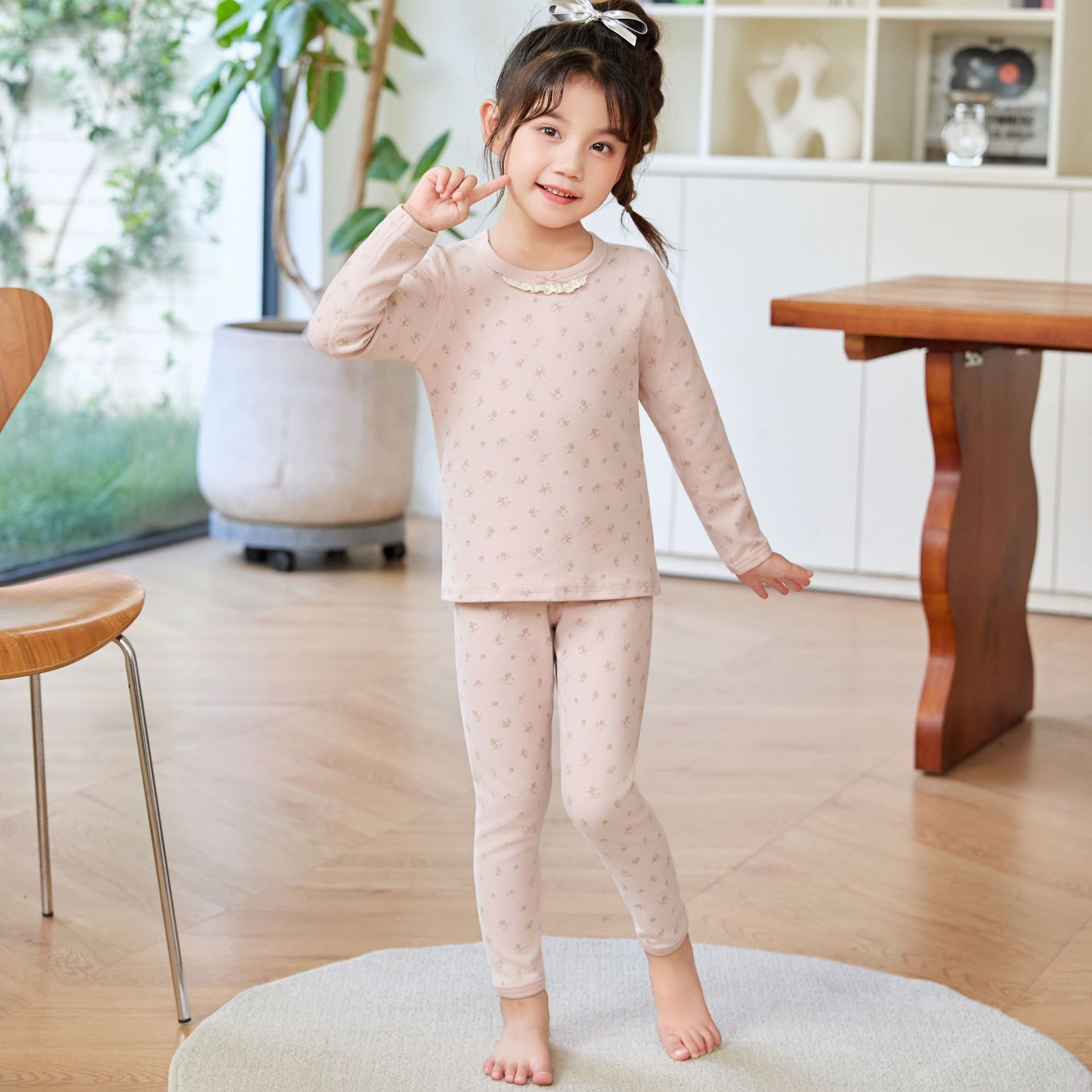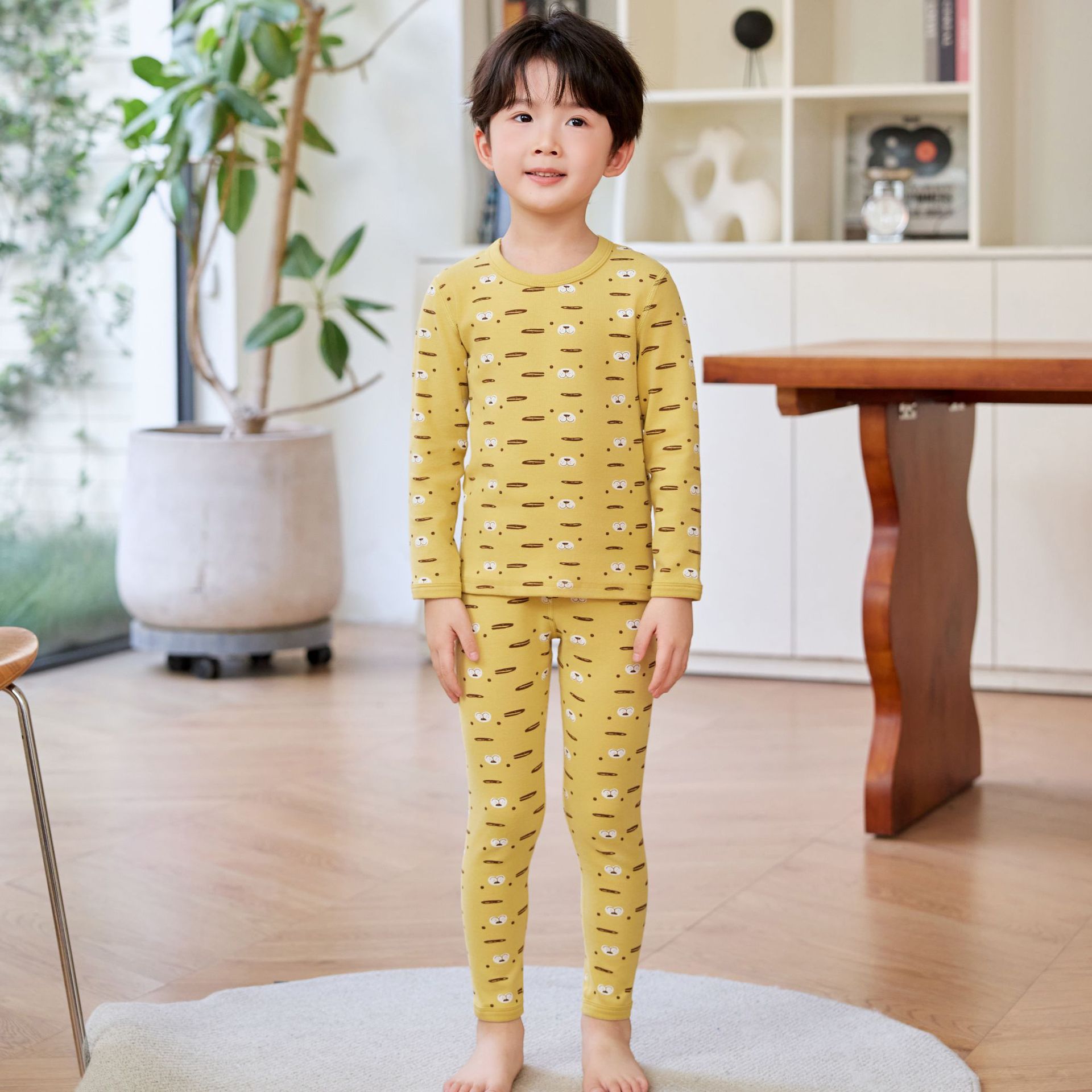 Японский и корейский комплект детского нижнего белья, пижамы из чистого хлопка, осенне-зимние теплые бесшовные детские термотопы и штаны, домашняя одежда класса А