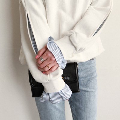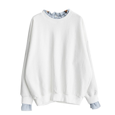 Поддельная белая толстовка из двух частей с круглым вырезом, Женская Студенческая 2021, весенне-летний пуловер в Корейском стиле, свободная строчка, тонкая куртка BF