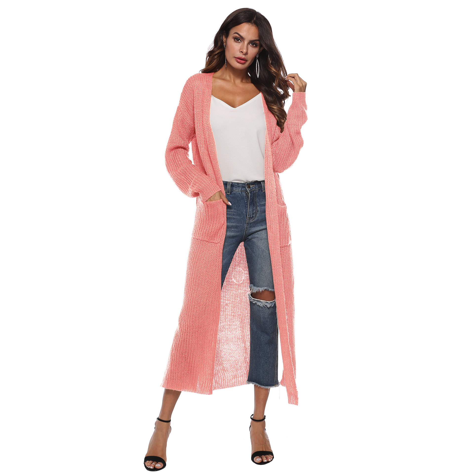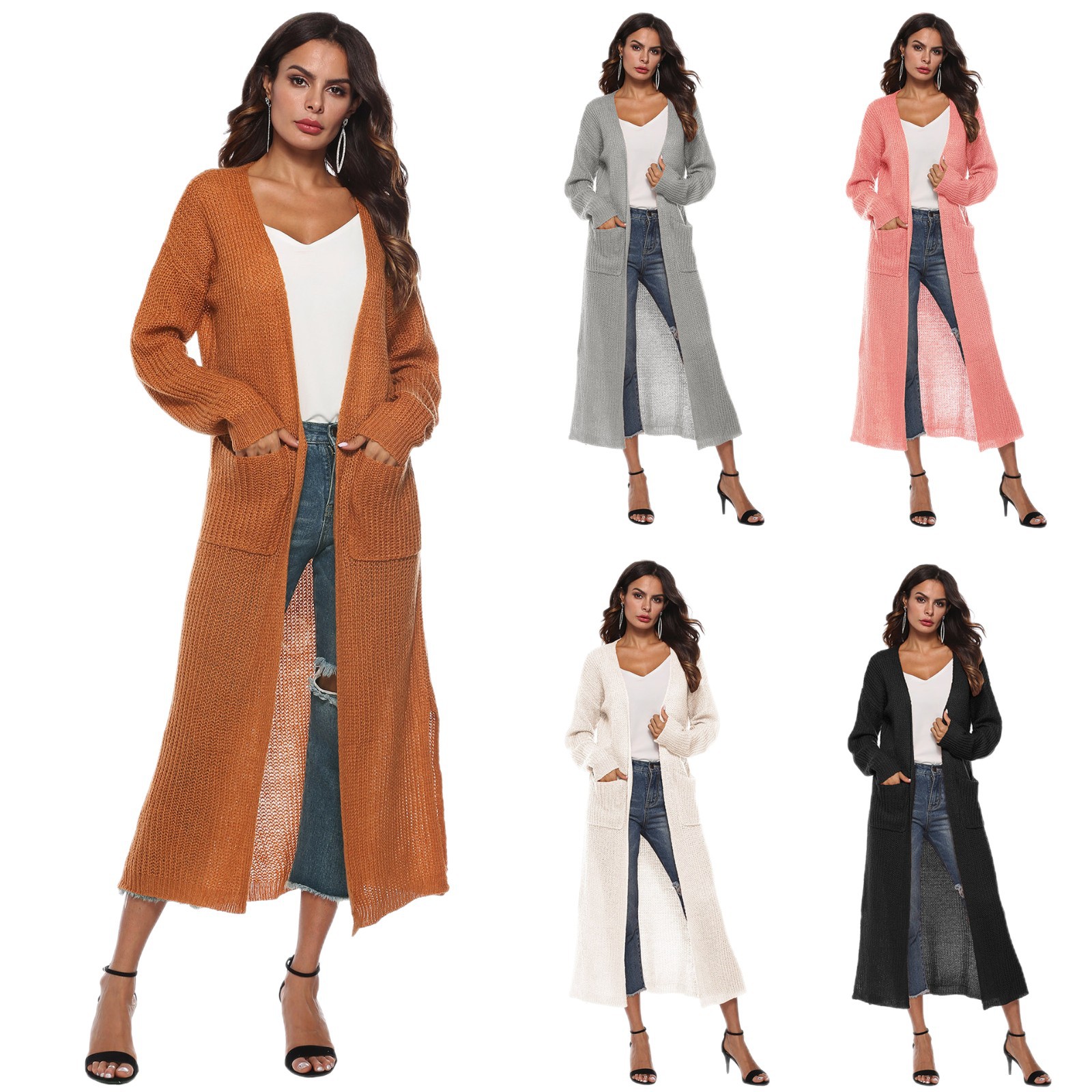 Трансграничный шерстяной свитер в европейском и американском стиле с разрезом, брюки с большим клапаном и карманами, кардиган, свитер, длинная тонкая верхняя одежда A8019, разноцветная