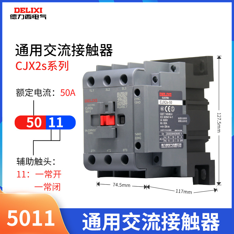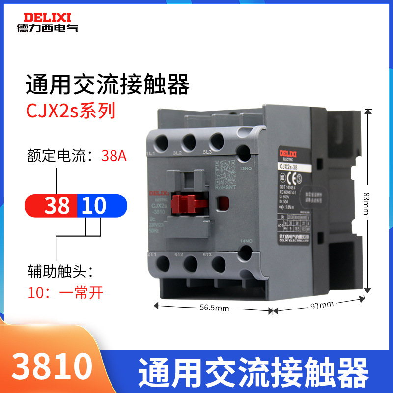 Delixi CJX2S Контактор переменного тока 1210 1810 трехфазный 24 В 36 В 220 В 380 В 50 Гц 50A