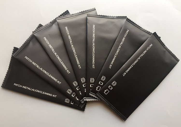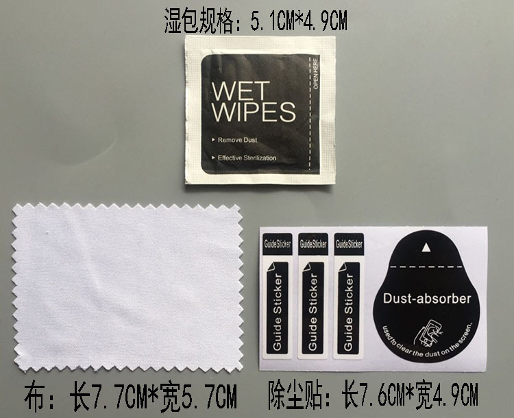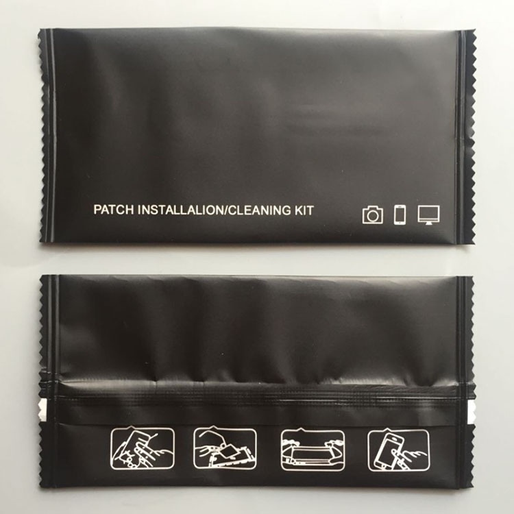 Полиэтиленовый пакет + влажный пакет + ткань + наклейка для удаления пыли