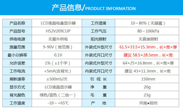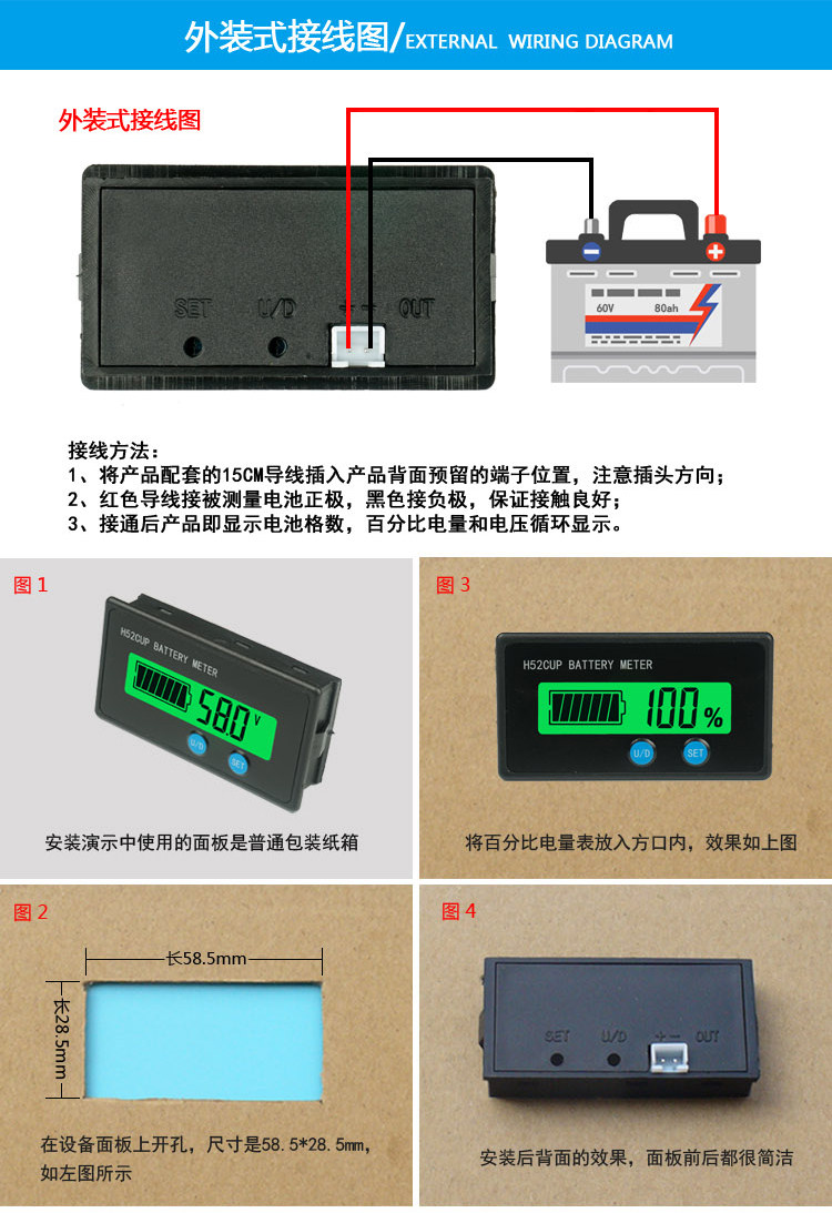 Свинцово-кислотная батарея H52 литий-железо-фосфатная батарея дисплей 12v24v36V48V60V72V метр