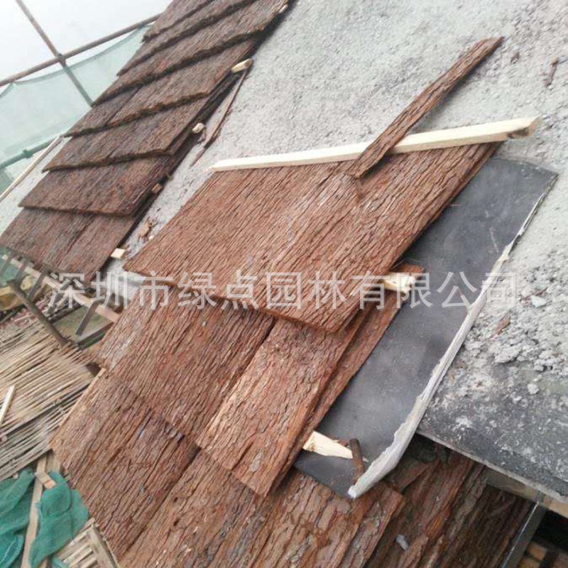 真杉树皮的性能优点:杉树皮经久耐用,本身防腐性能较好,不易生虫。经过药水处理后,主要用于树皮屋顶和墙面装饰等,一般使用寿命6-8年。