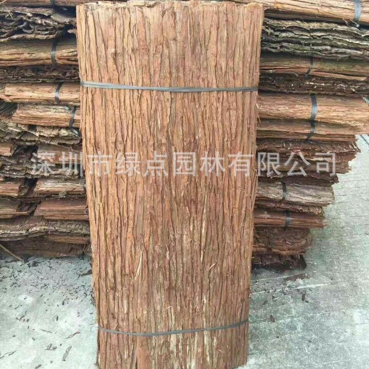 天然树皮杉树皮目前的主要用途是用在农庄休闲屋,旅游山区门饰,山庄别墅屋的装饰,复古艺术木屋,复古的篱笆,有些建筑物为了体现别样的艺术情调也会用到杉树皮,杉树皮可以小块切下来做工艺礼品的装饰。无论是古老的棕色还是具有年代的历史纹理,以及沉香的松油气息无不体现大自然的神工鬼斧。若是房子的外观披上这块具有艺术气氛的树皮,无疑是最大的亮点。