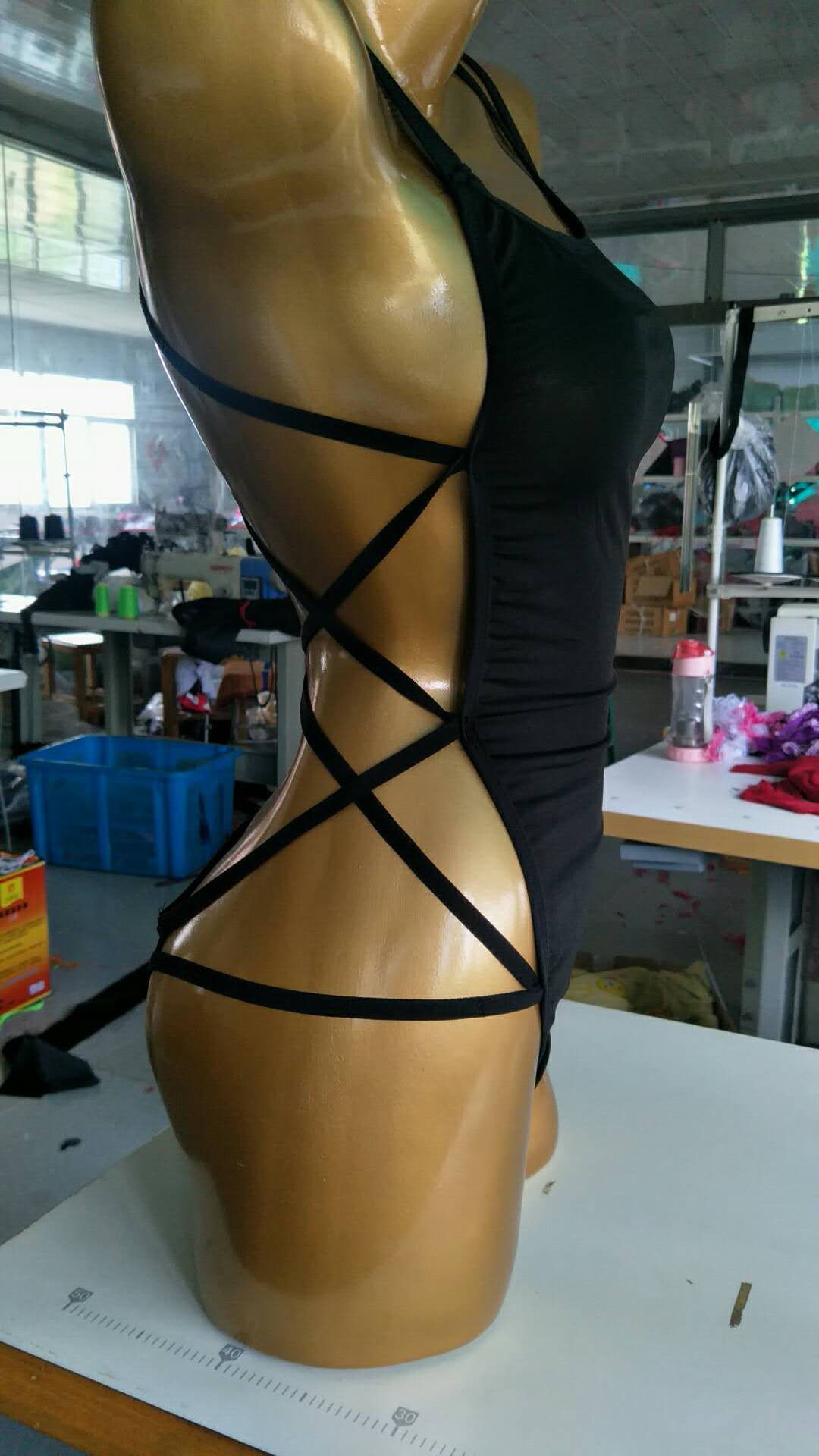 Европейский и американский стиль: черное боди с открытой спиной и шнуровкой для женщин, летний пляжный купальник без рукавов, облегающий, с круглым вырезом, оптом.