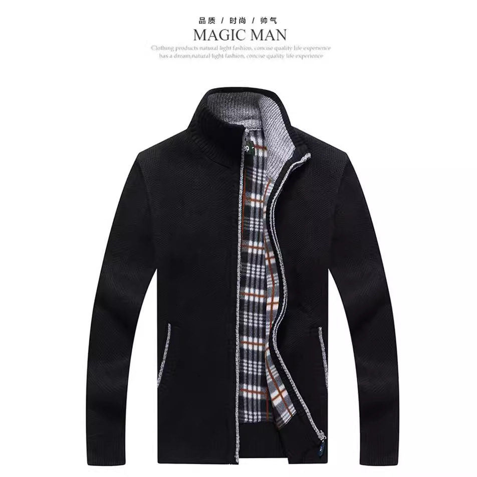 Мужской однотонный утолщенный кардиган с длинными рукавами и воротником для внешней торговли, Модный молодежный Мужской персонализированный Повседневный трикотаж