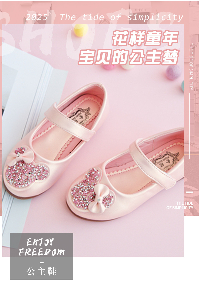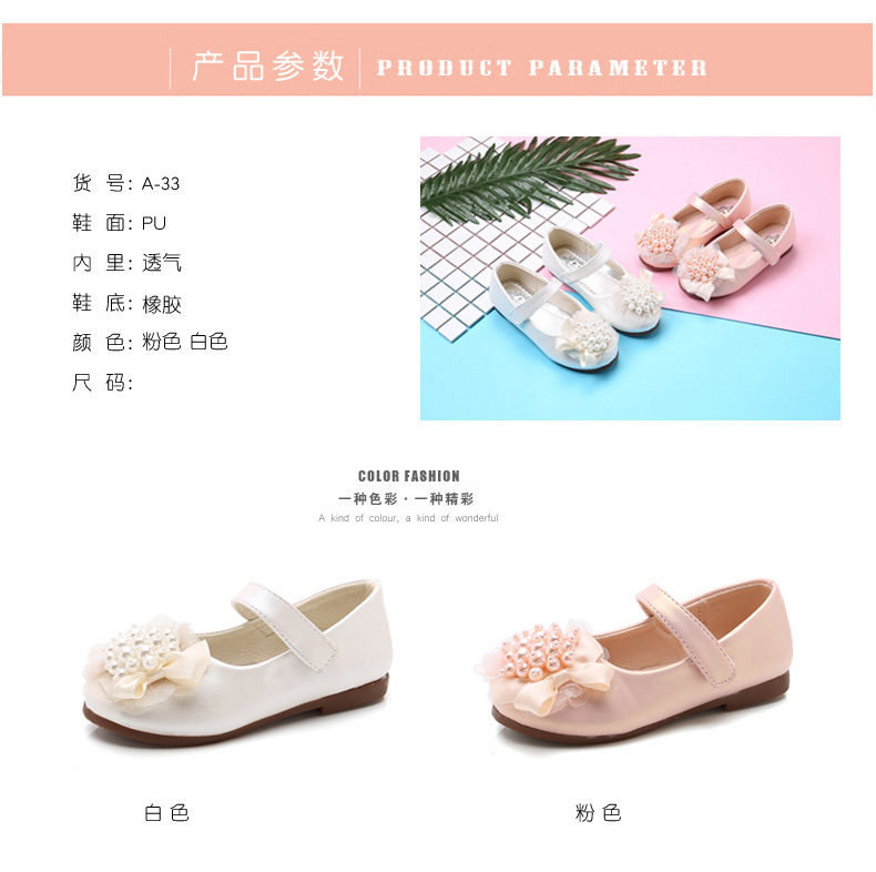 Кожаная обувь для девочек Обувь принцессы со стразами Весна и осень 2023 Новый корейский стиль Детская обувь с кристаллами на мягкой подошве Белые туфли