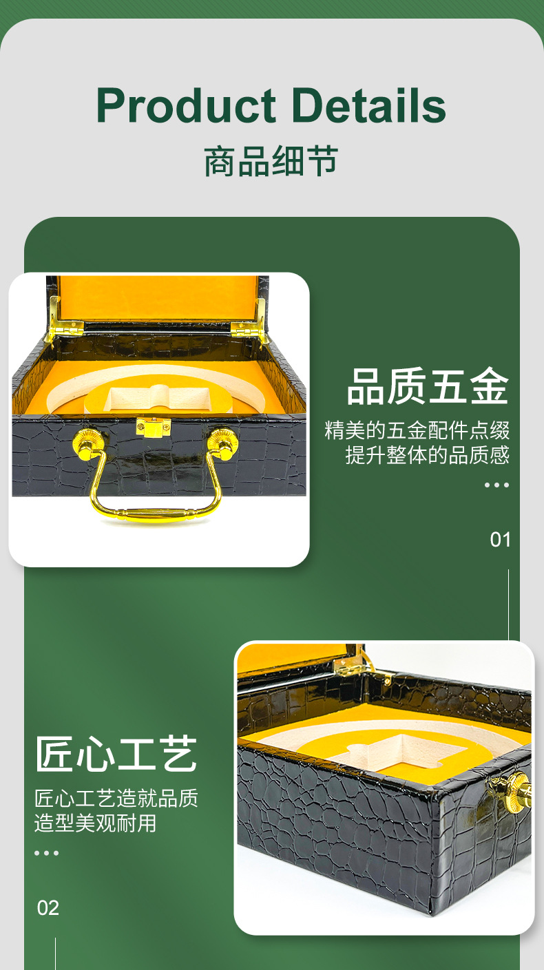 Поясная коробка, чайный замок, подарочная упаковка для сигар, коробка для ювелирных изделий с крокодиловым узором, подарочная кожаная коробка из цельного дерева, коробка на складе