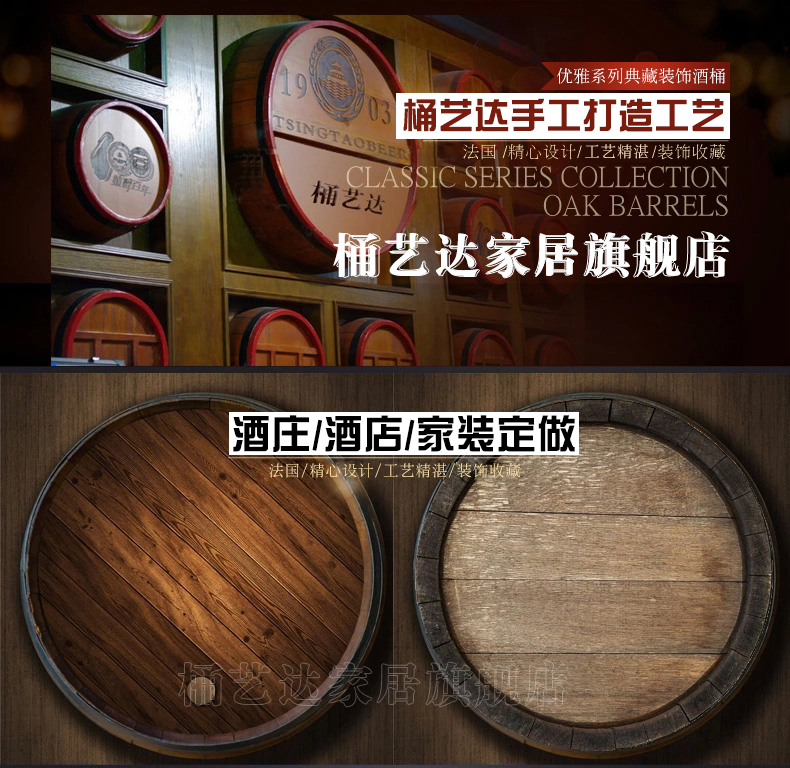 Винный погреб украшение стены бара полбочки стена висит дубовая бочка крышка дно вино дубовая бочка оптовый заказ