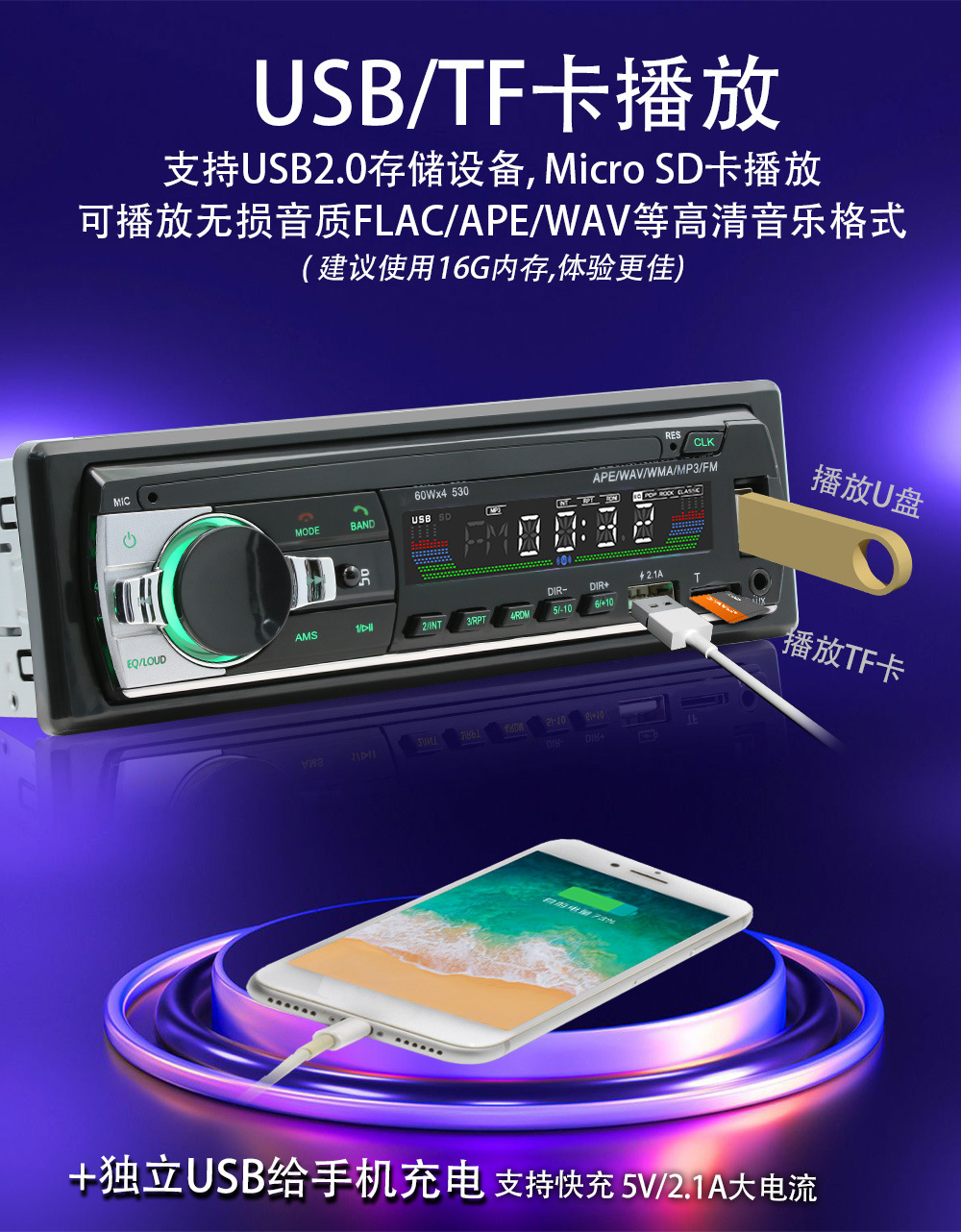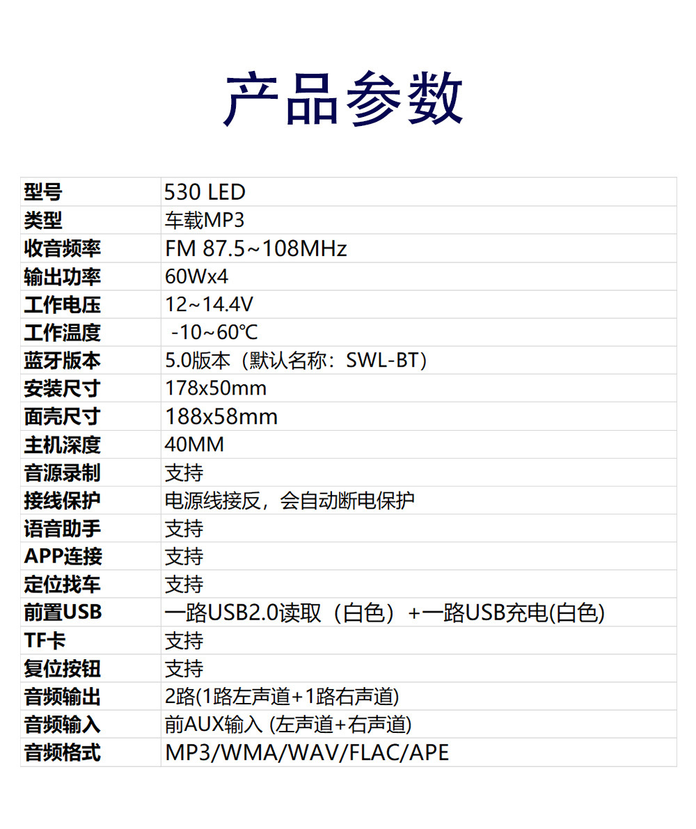 *音频格式:MP3/WMA/WAV/FLAC