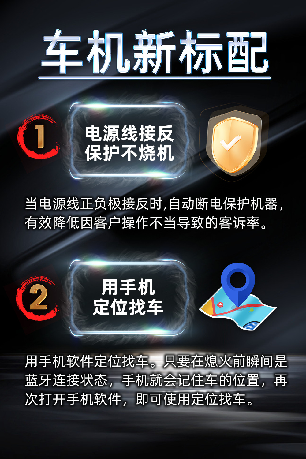 •接线保护功能直接帮跨境客户减少至少20%客诉退款损失(跨境客户零售到国外,客人自己安装接线,正负极分不清接错时候正常会直接烧坏机器主板或者保险丝,导致客诉退货或者差评,我司最新研发此产品电源线随便接N次都不会烧机器和保险丝,直到客户接对为止)