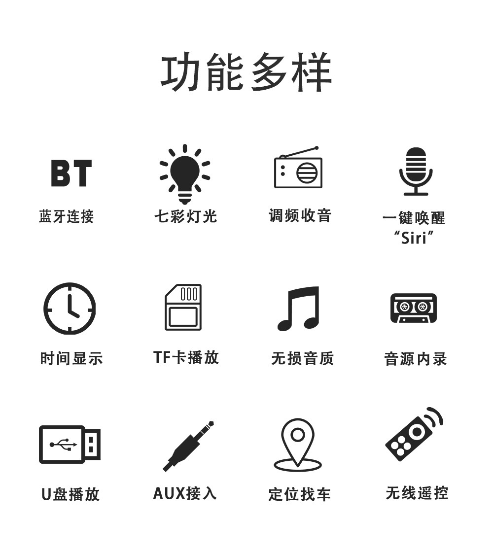 *收音频率:FM87.5M-108MHZ(默认欧洲频率,其他地区频率可调详情请联系客服)