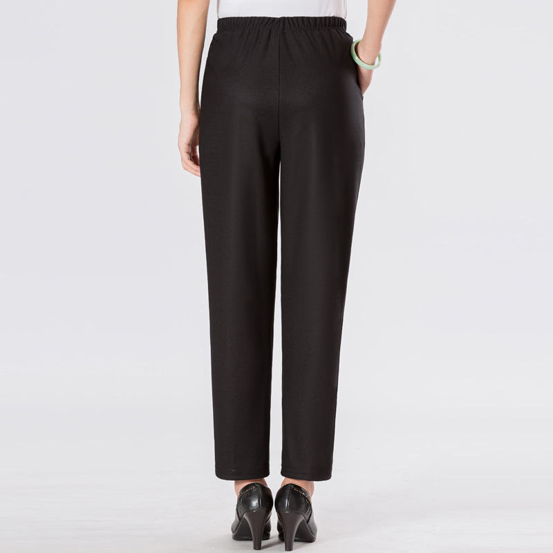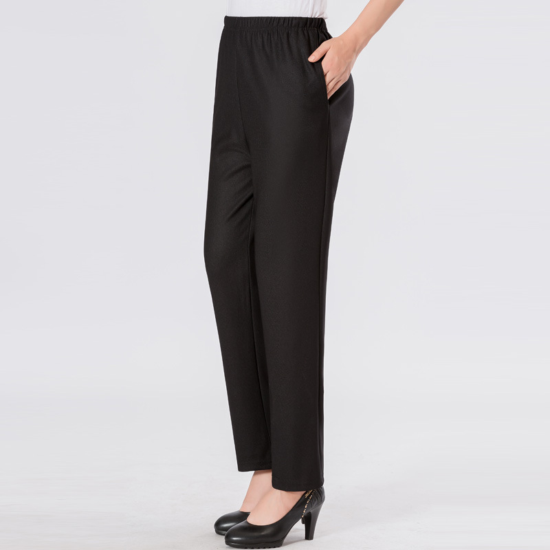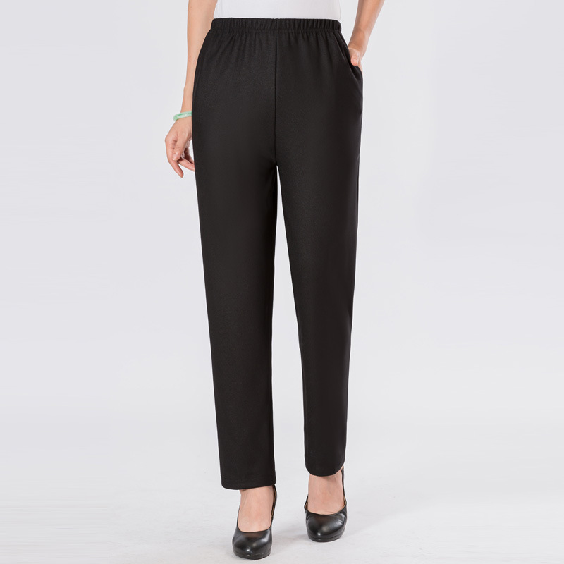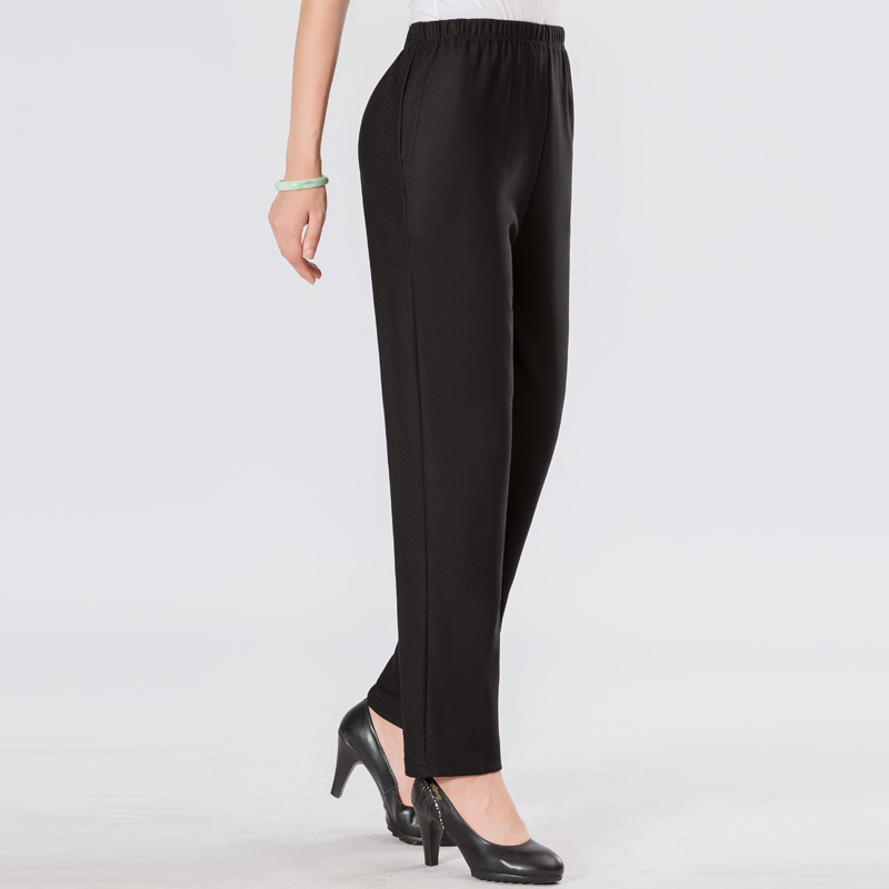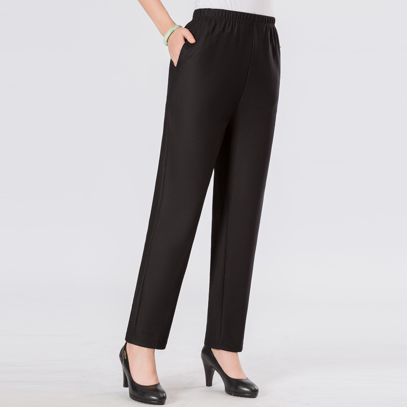 Женские повседневные черные брюки среднего и пожилого возраста 2021, весна и осень, Однотонные эластичные прямые брюки с эластичной талией для мамы