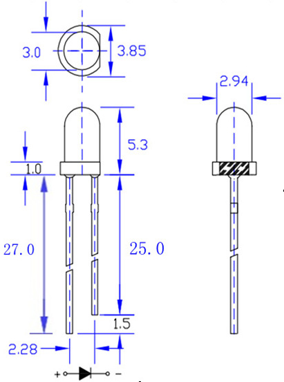 体积(MM) | 亮度(MCD) | 电压(V) | 电流(MA) | 波段(NM) |