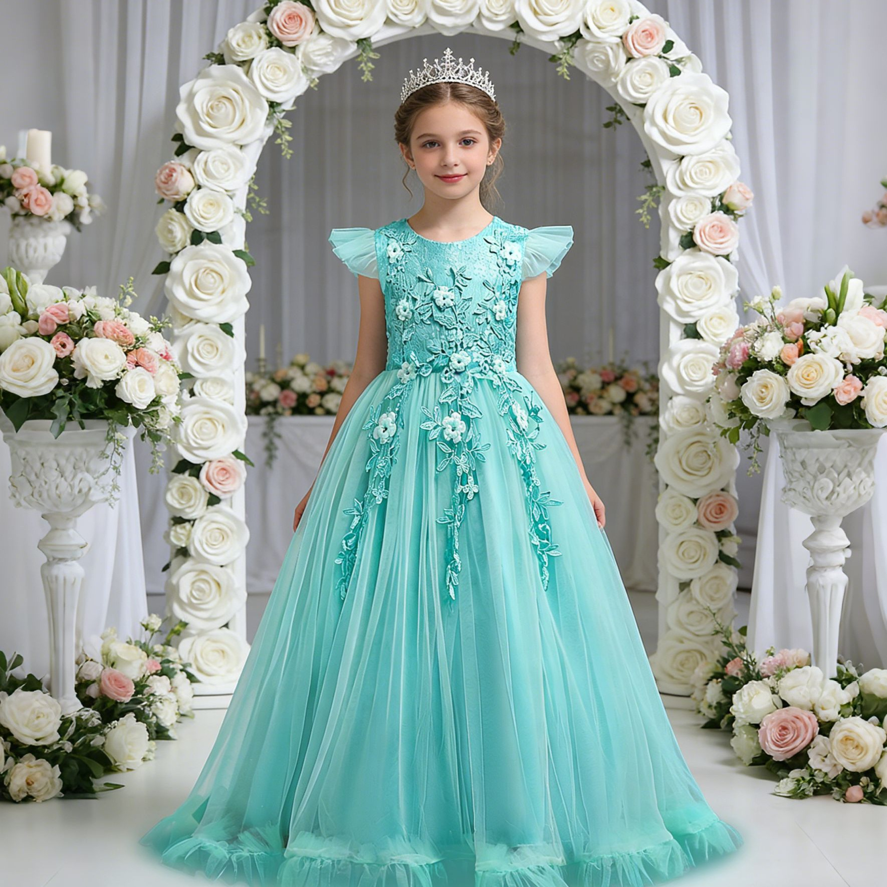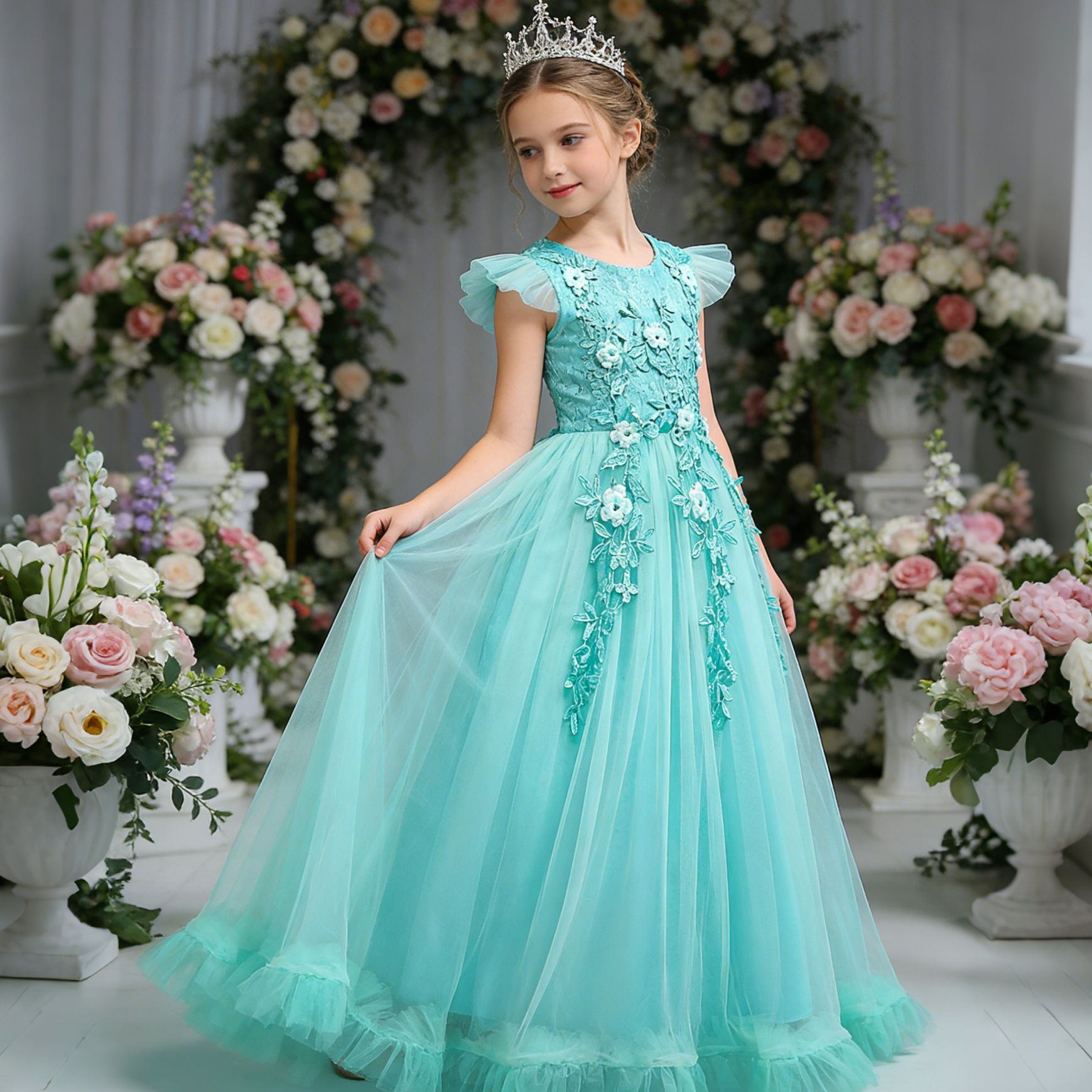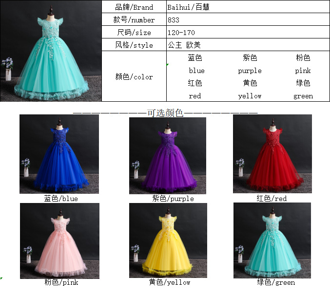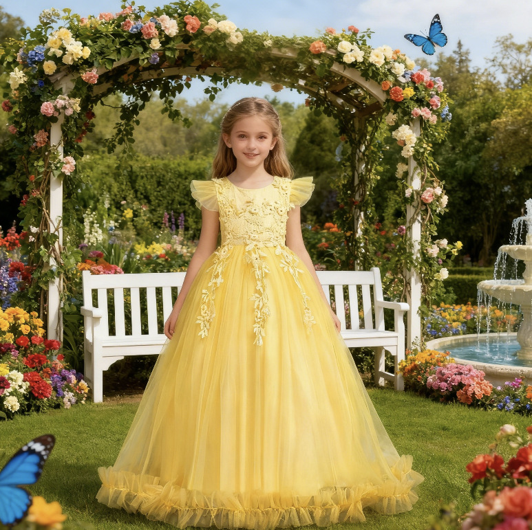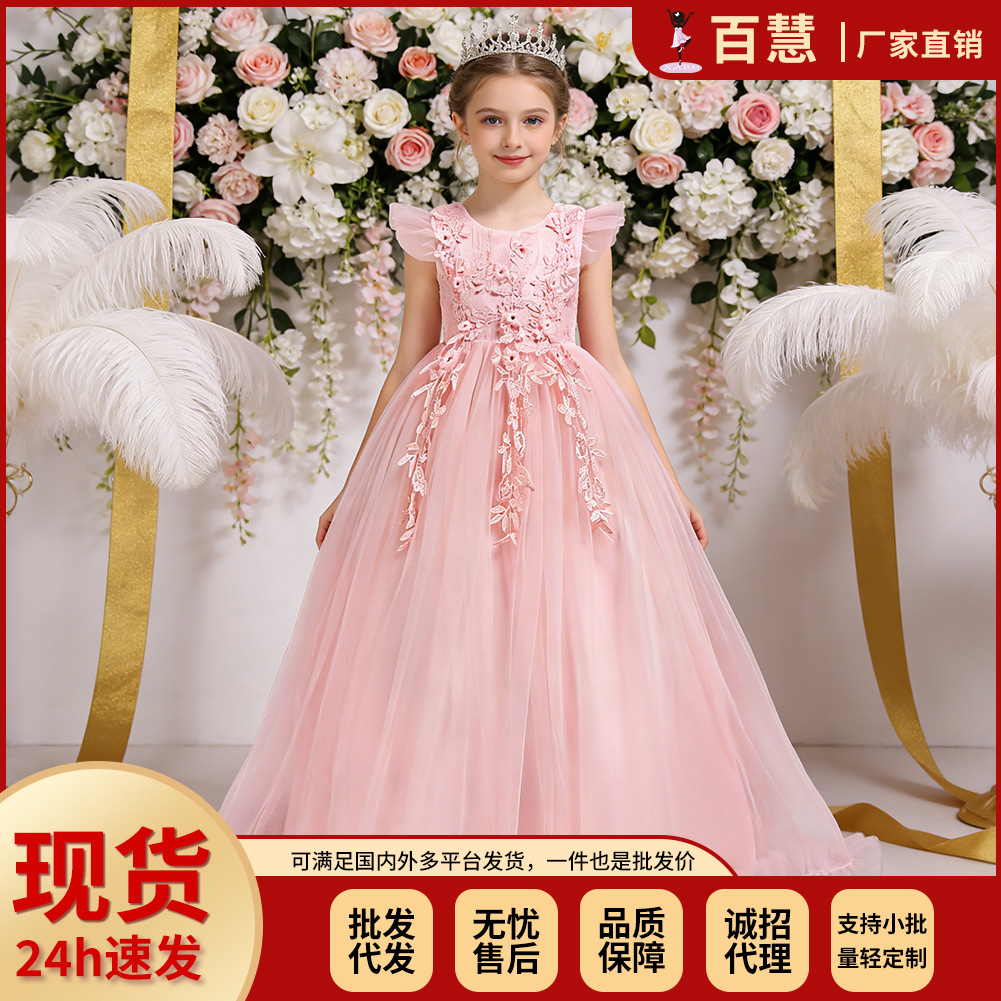 Европейские и американские детские вечерние платья для девочек-цветочниц свадебное платье принцессы с кружевной вышивкой