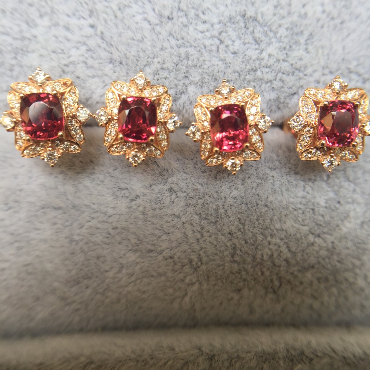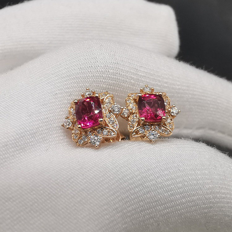 - 名称:鑫太珠宝18K玫瑰金红尖晶镶嵌钻石钉耳环 色彩艳丽,净度好,生日礼物 情人节礼物 配证书现货
