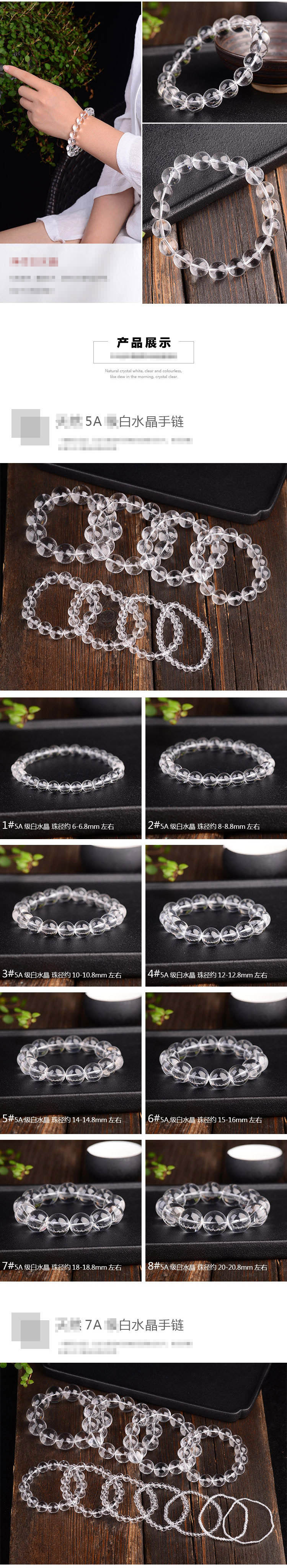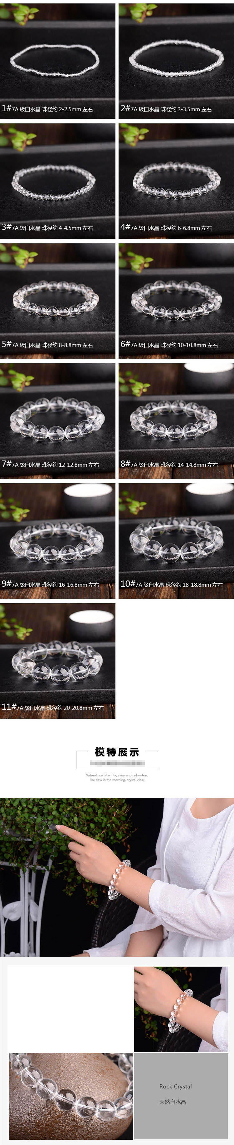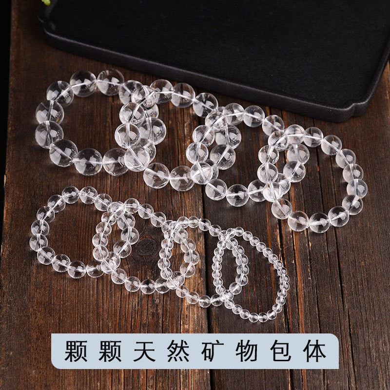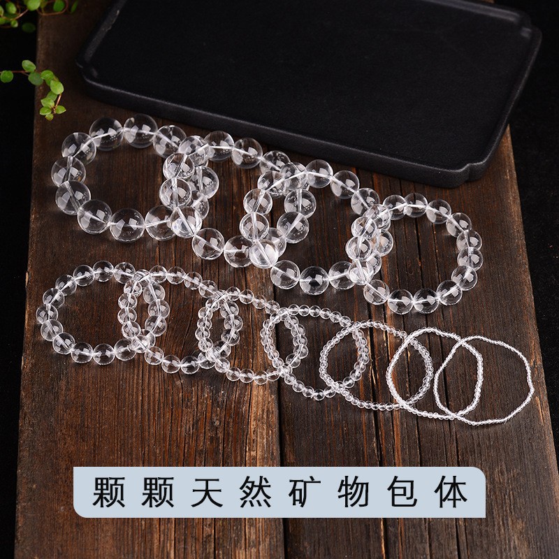 Jing Yao 7A Чистый браслет с белым кристаллом из круглых бусин браслет из одного круга 6-20 Одиночный круг Pure Baifu Qianxiang Town House Мужчины и женщины