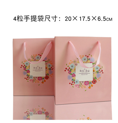 4粒手提袋尺寸:17.5*6.5*20高,容量:可装一盒4粒蛋黄酥盒子