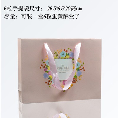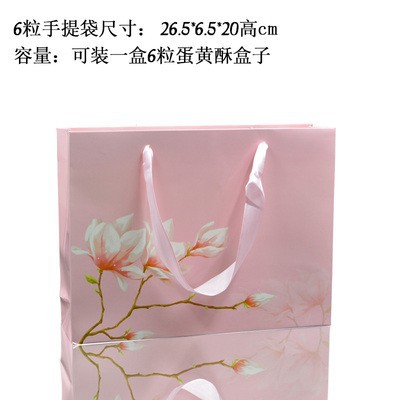 6粒手提袋尺寸:26.5*11*20高,容量:可装二盒6粒蛋黄酥盒子