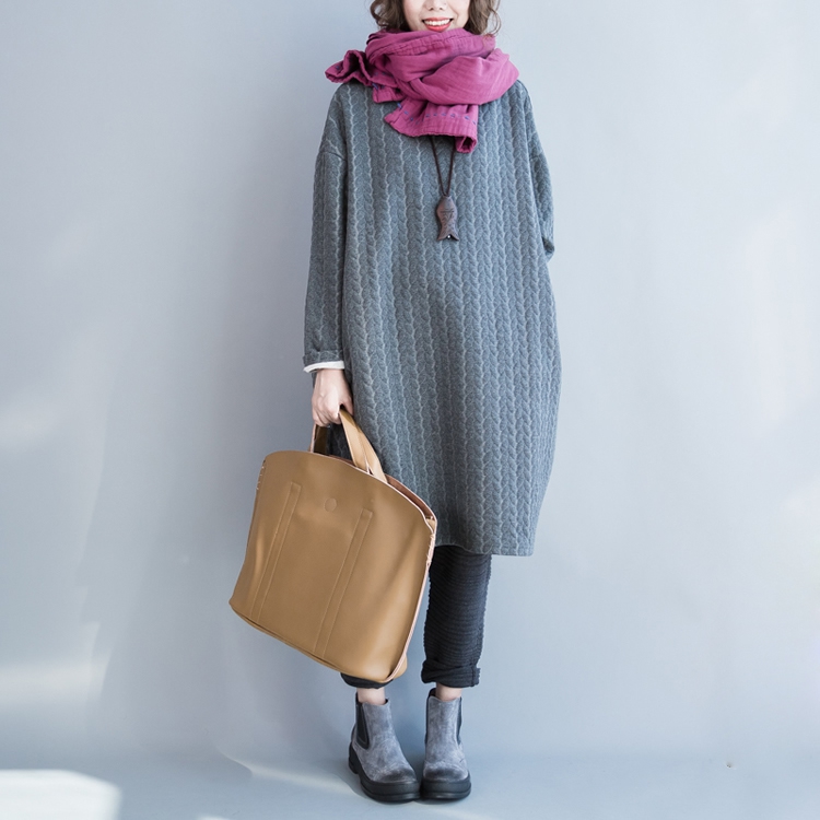 Модное худеющее платье-футболка свободного кроя из хлопка и льна в корейском стиле для полных женщин, осень-зима 2025