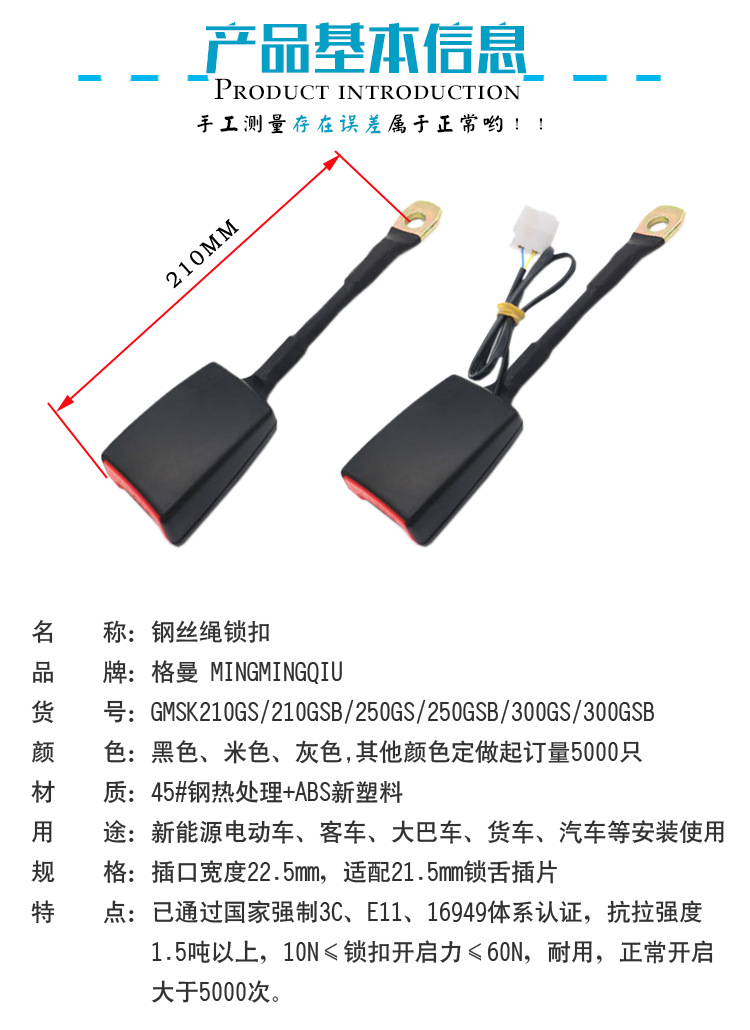 锁扣需要带线产品价格+3元(常规线束,定做线束另算),并需要选择常开线束或者常闭线束,下单前请联系客户改价,并确认线束状态-常开/常闭下单请备注颜色和尺寸,否则默认发黑色,长度210mm